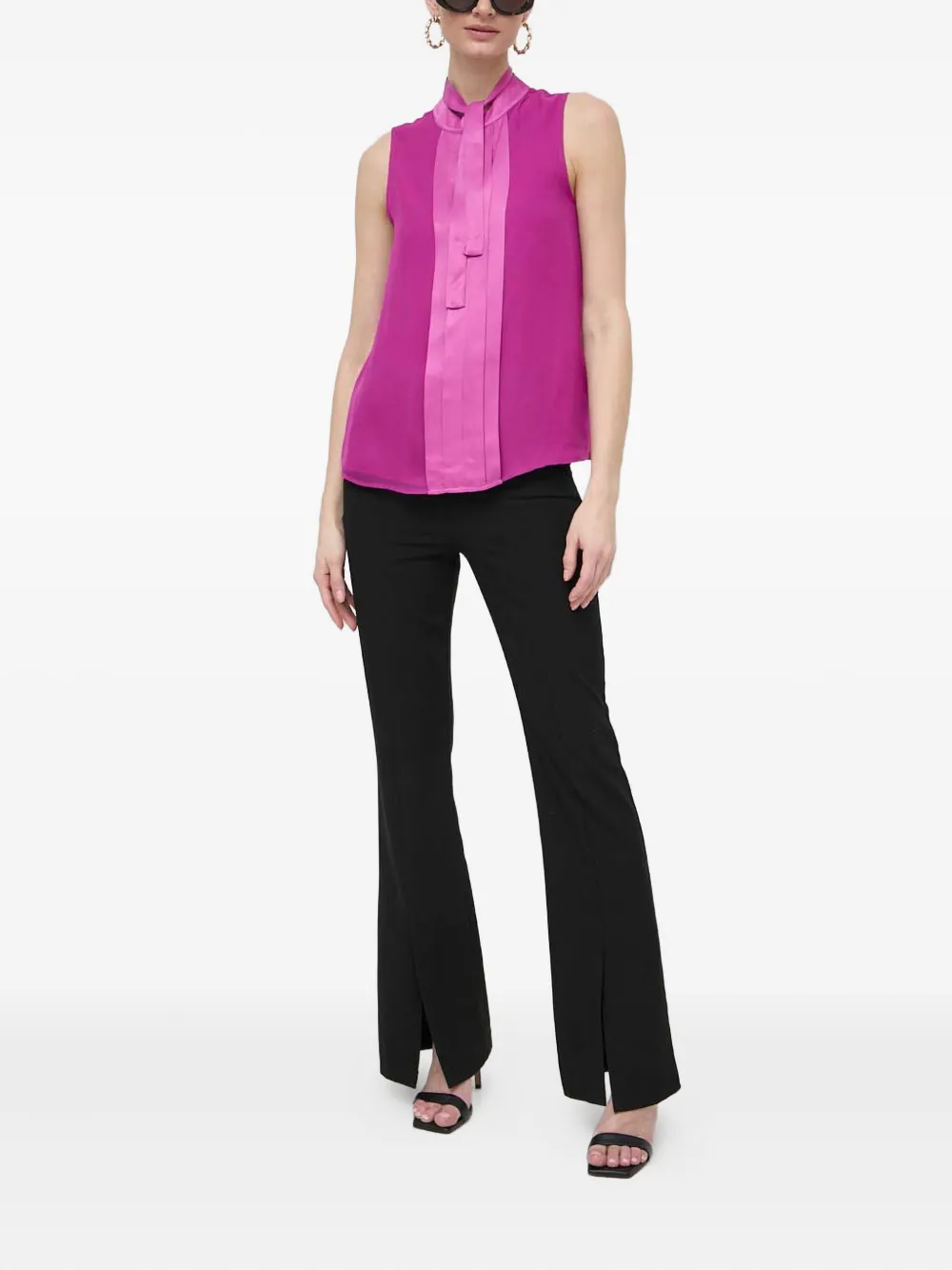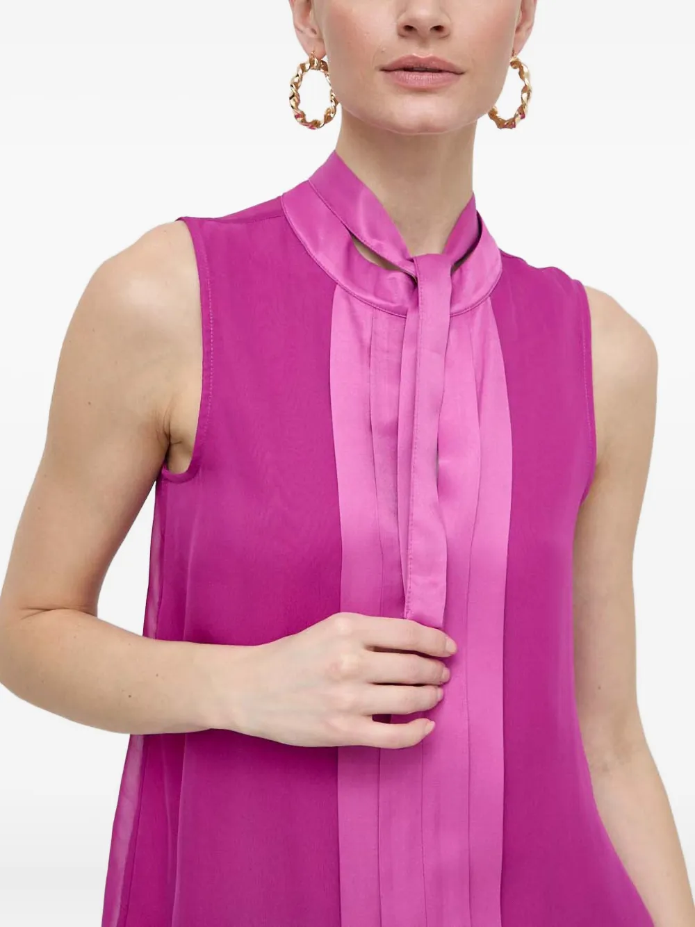 розовая безрукавка с круглым вырезом, завязкой и застёжкой на пуговицы