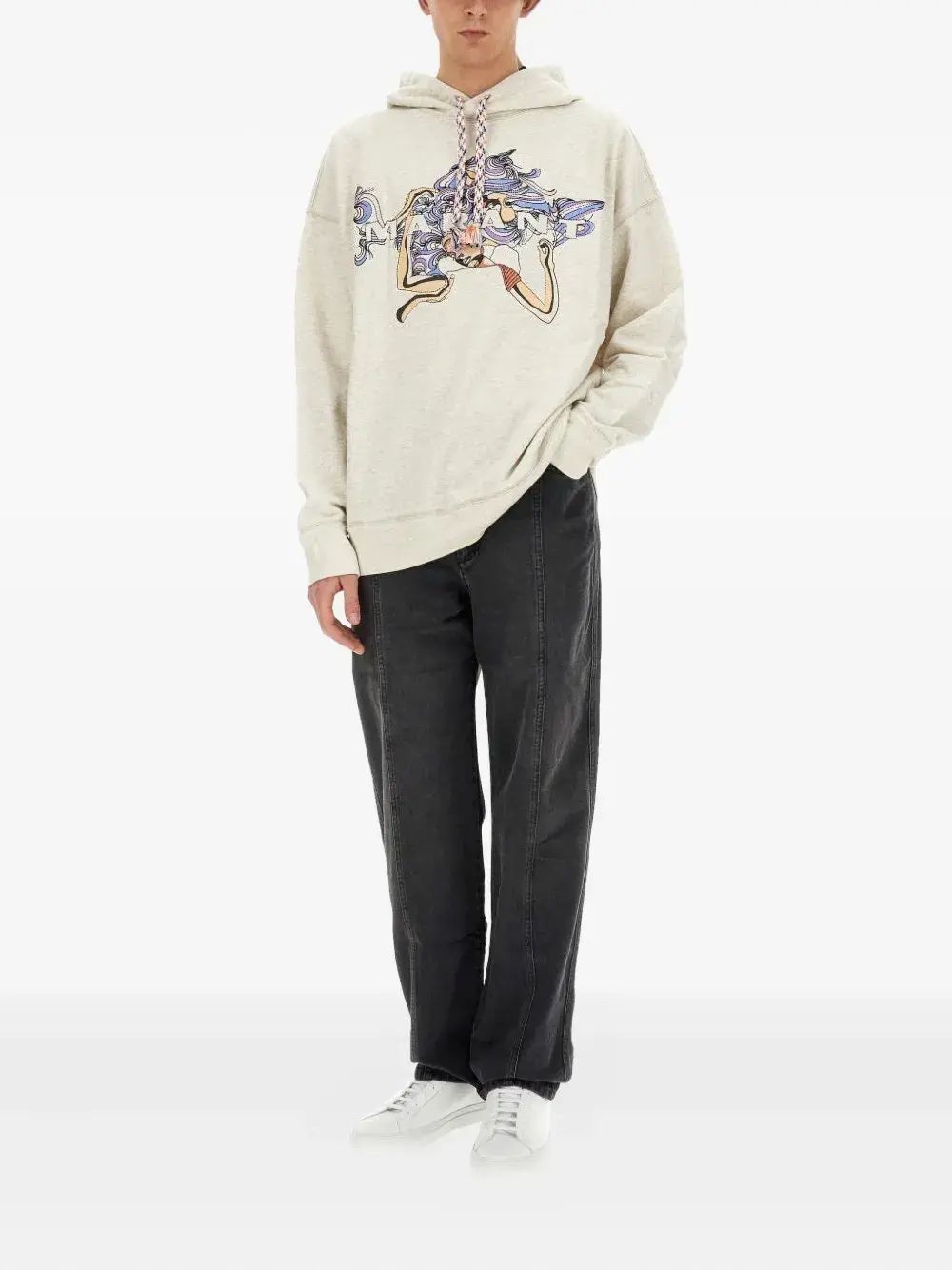 серый худи с графическим принтом, кулиской, ребристым подолом и манжетами