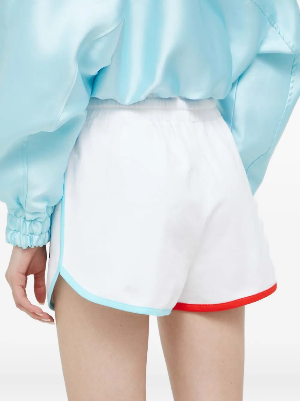 белый цвет, завязка на шнурке, отделка с принтом логотипа, эластичный пояс