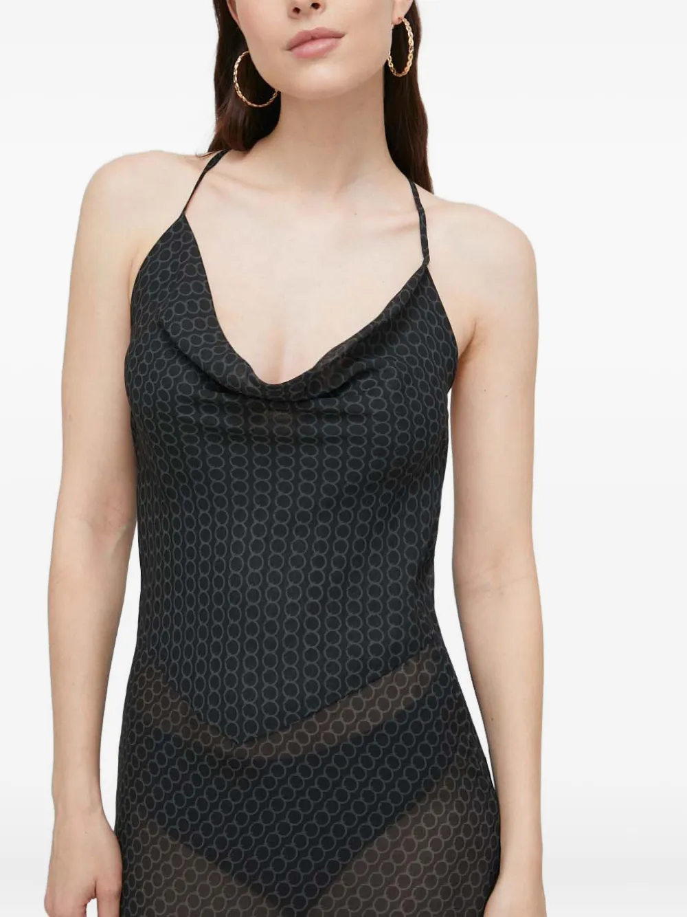 чёрный с принтом по всей поверхности, открытая спина, тонкие бретели