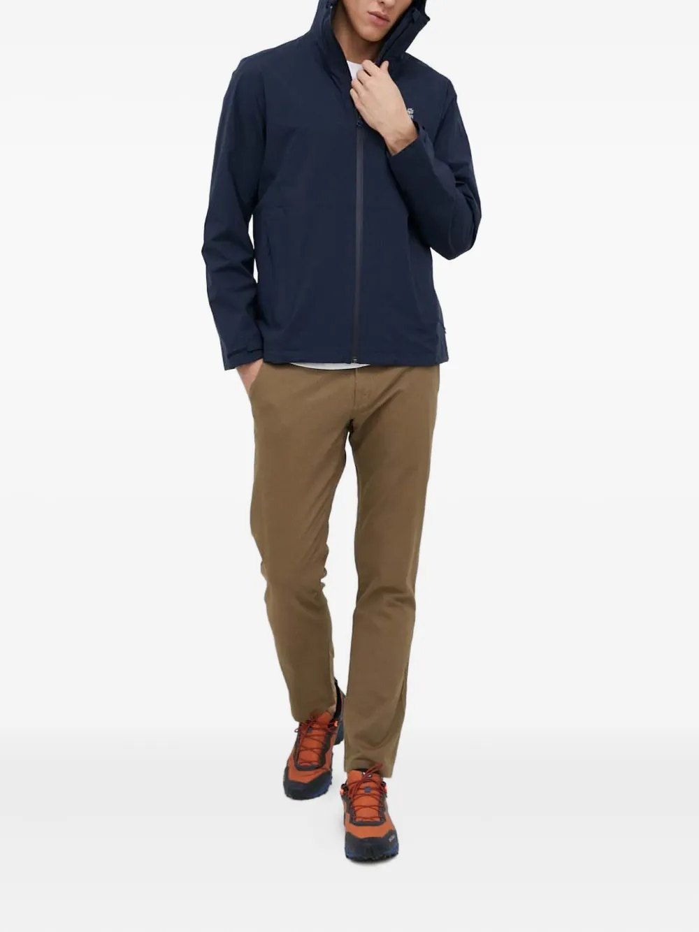 коричневый, логотип на заднем кармане, шлёвки для ремня, застёжка на пуговицах
