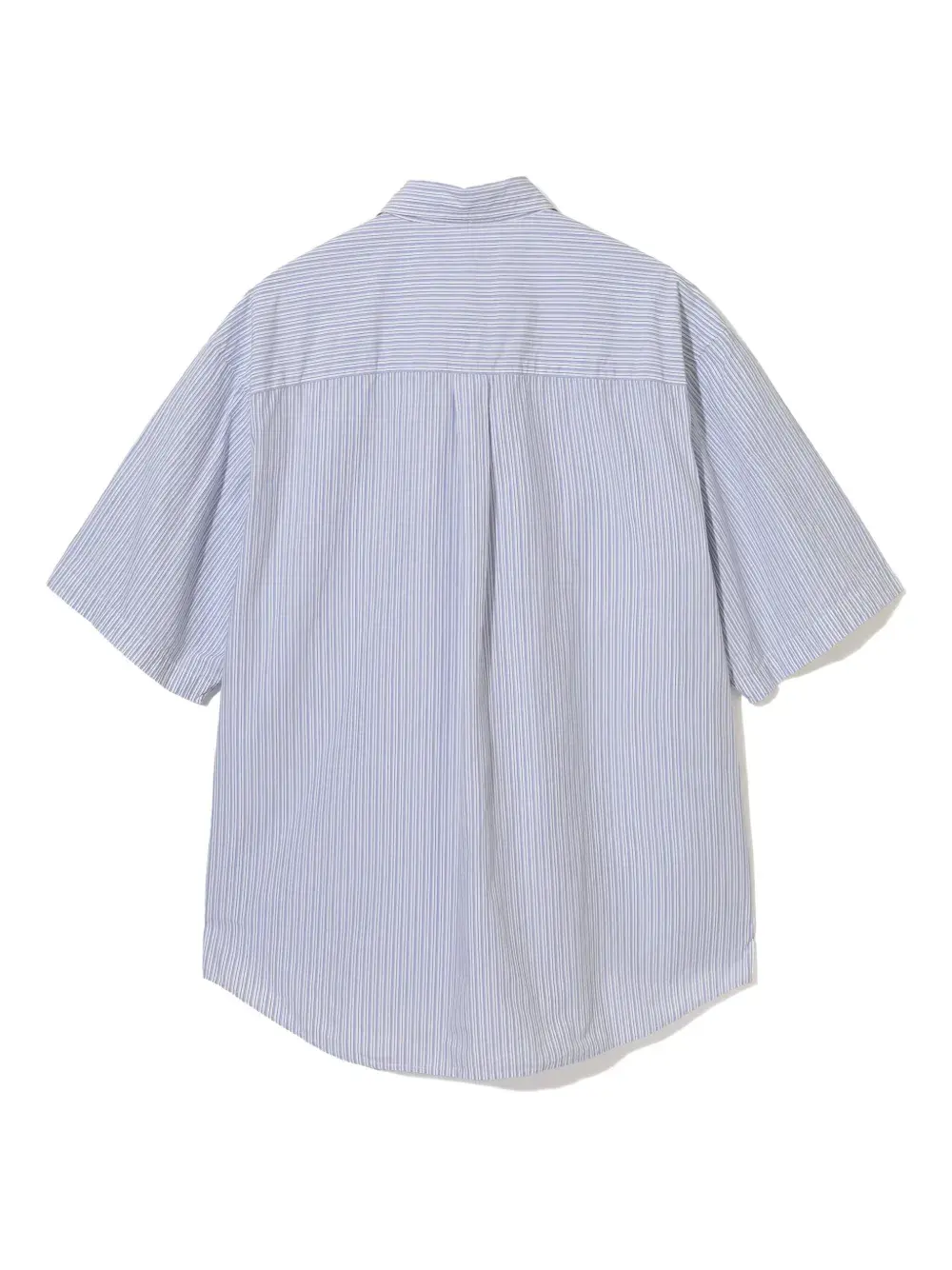 темно-синий в полоску, нагрудный карман, застёжка на пуговицах, короткие рукава, классический воротник