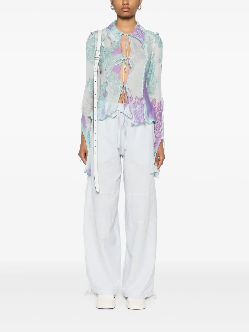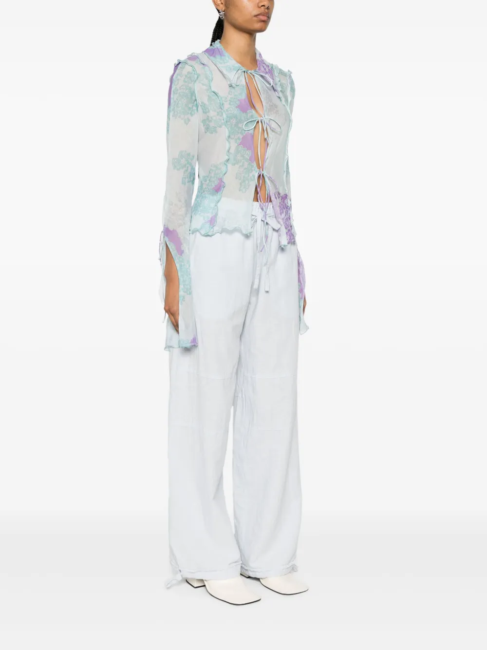 Полупрозрачная рубашка с цветочным принтом Acne Studios, синий