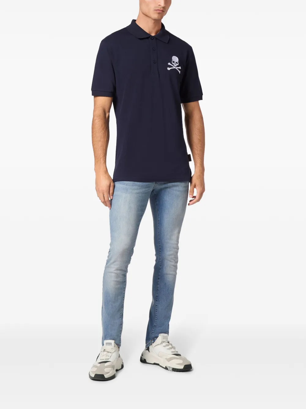 Рубашка поло с вышивкой Skull & Bones Philipp Plein, синий