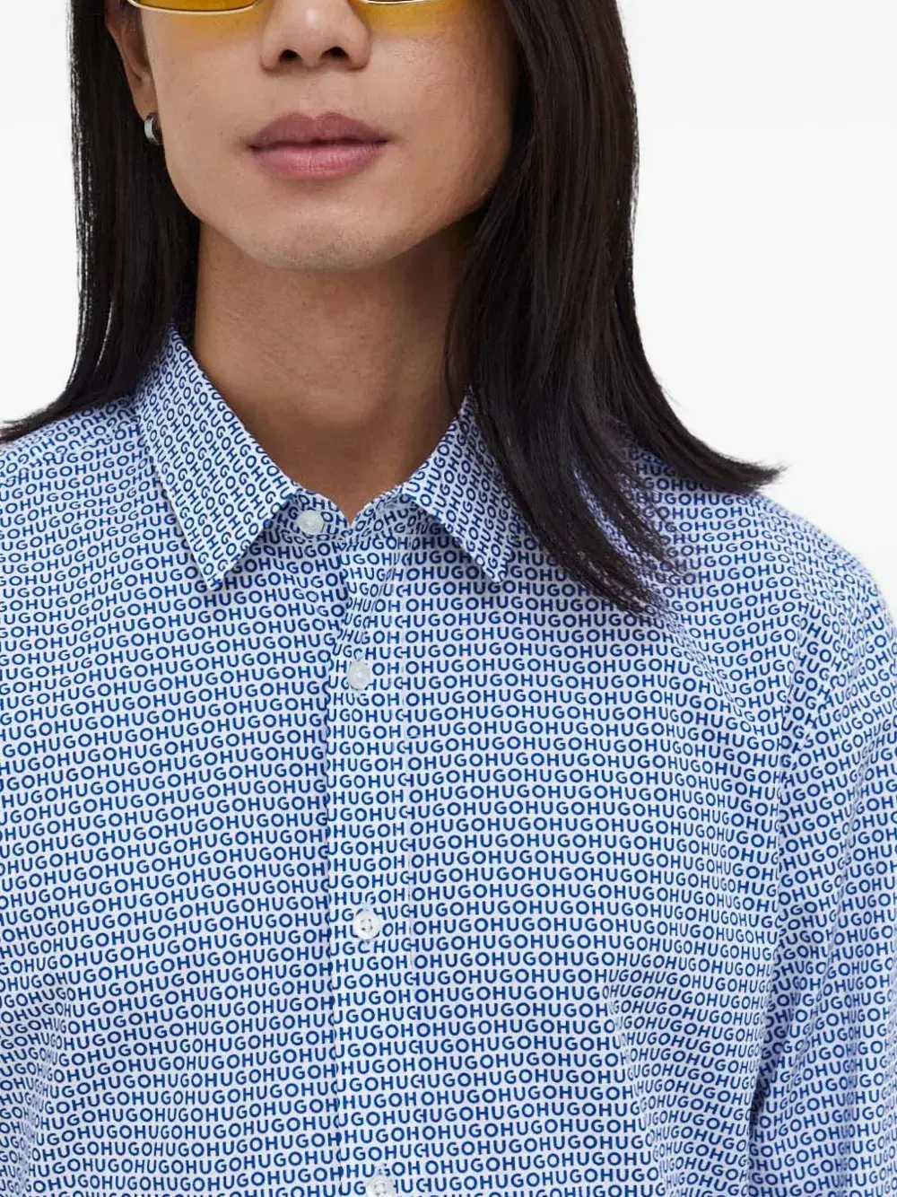Рубашка с принтом-логотипом Hugo, синий 14 183₽