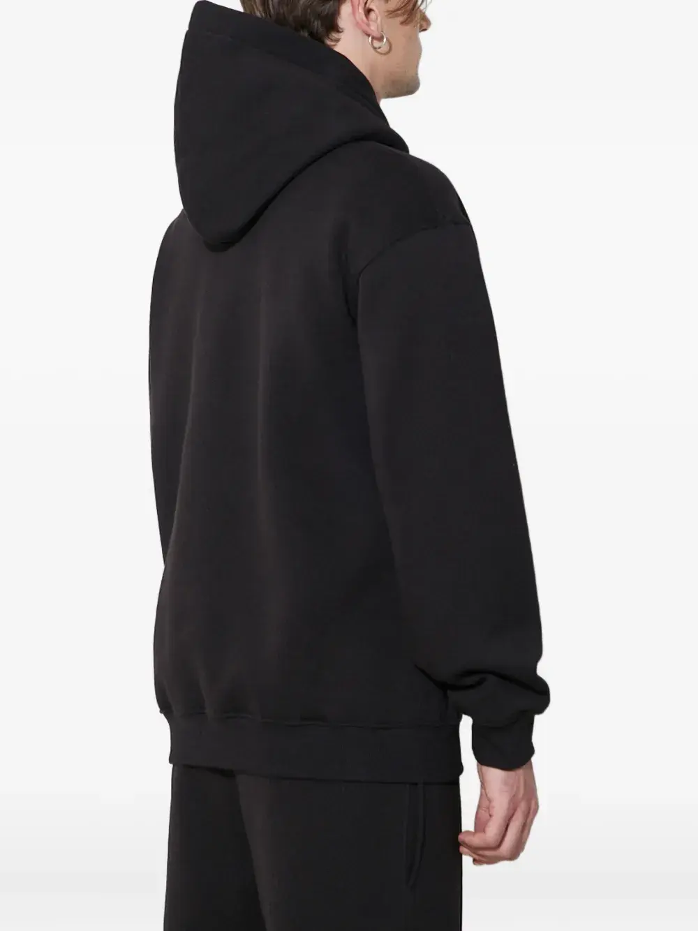 черный классический худи с длинными рукавами, передним карманом-кенгуру, вышитой молнией и ребристым подолом