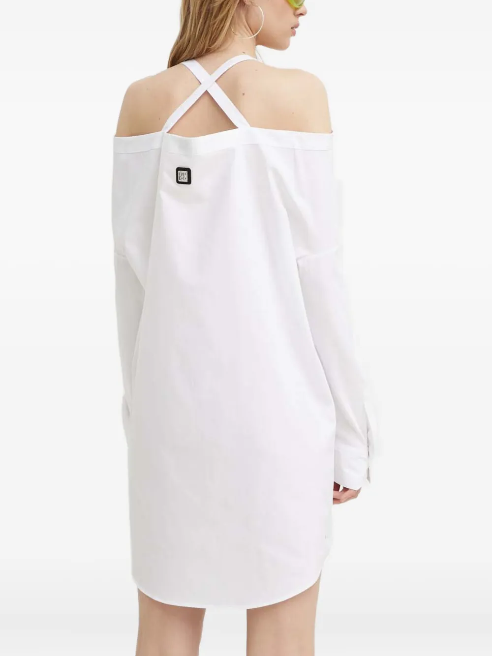 Мини-платье с открытыми плечами и бретелями Hugo, белый