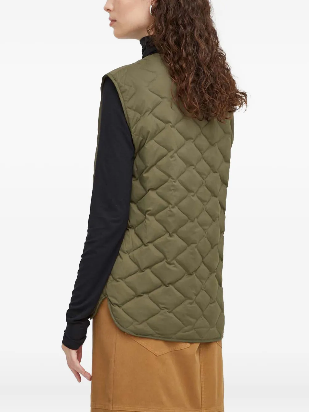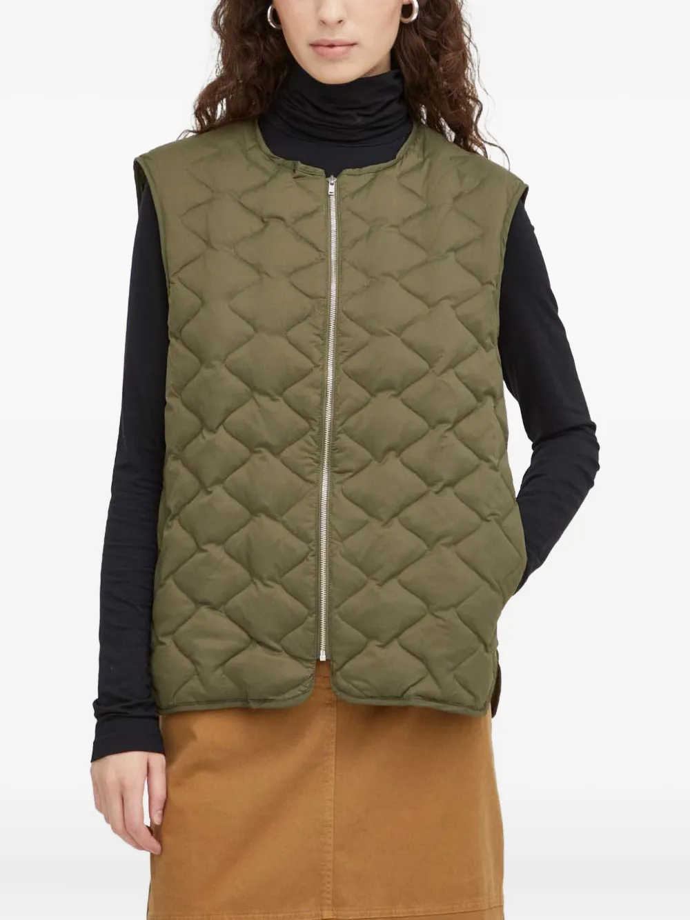 хаки стеганый жилет на молнии с круглым вырезом, без рукавов, с боковыми карманами