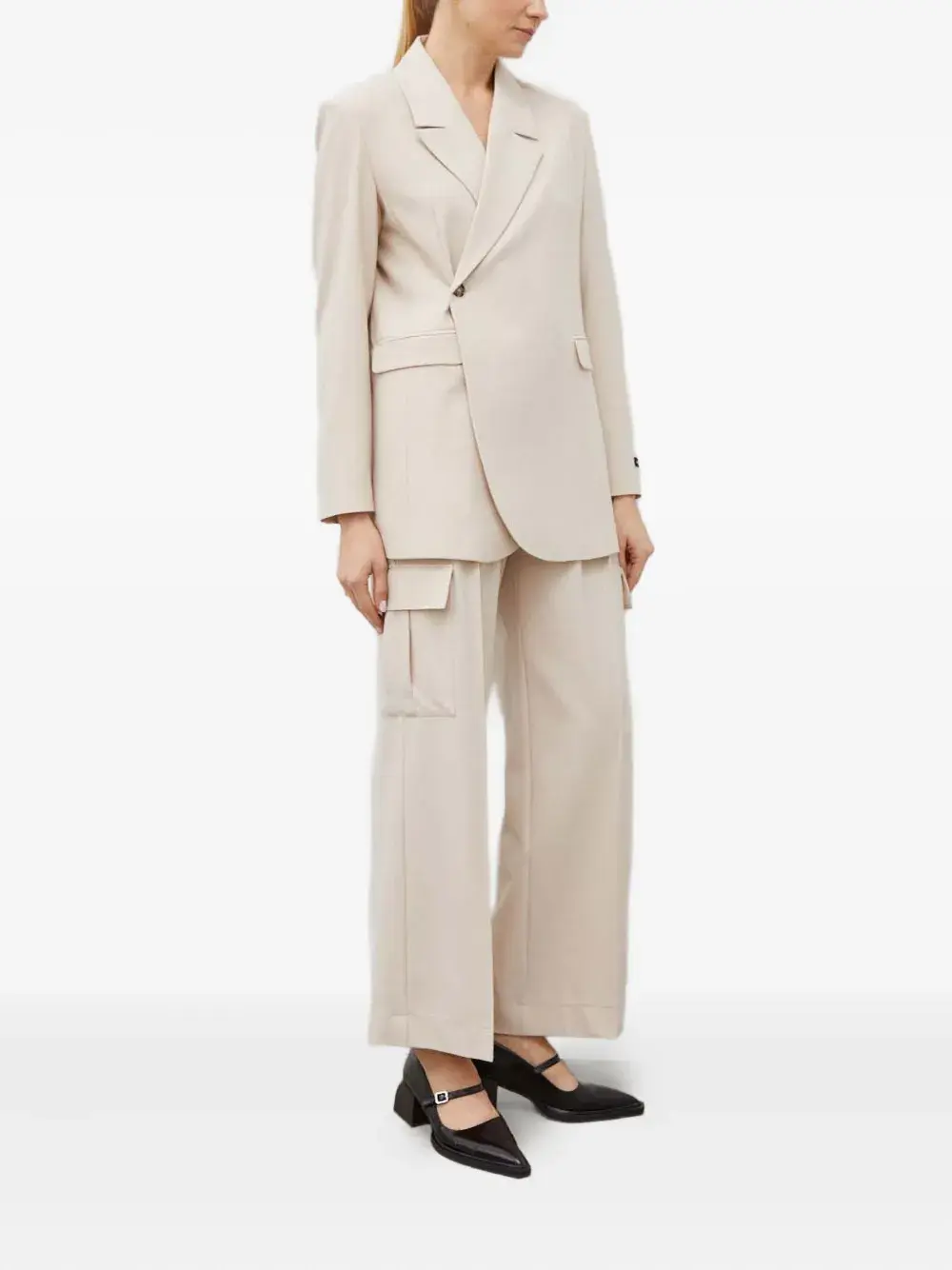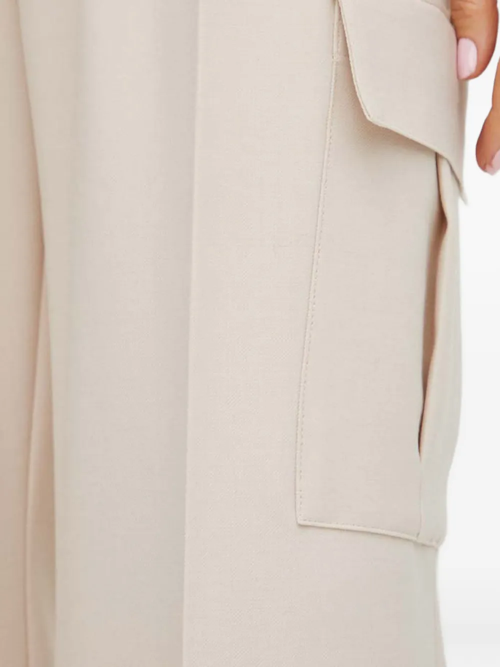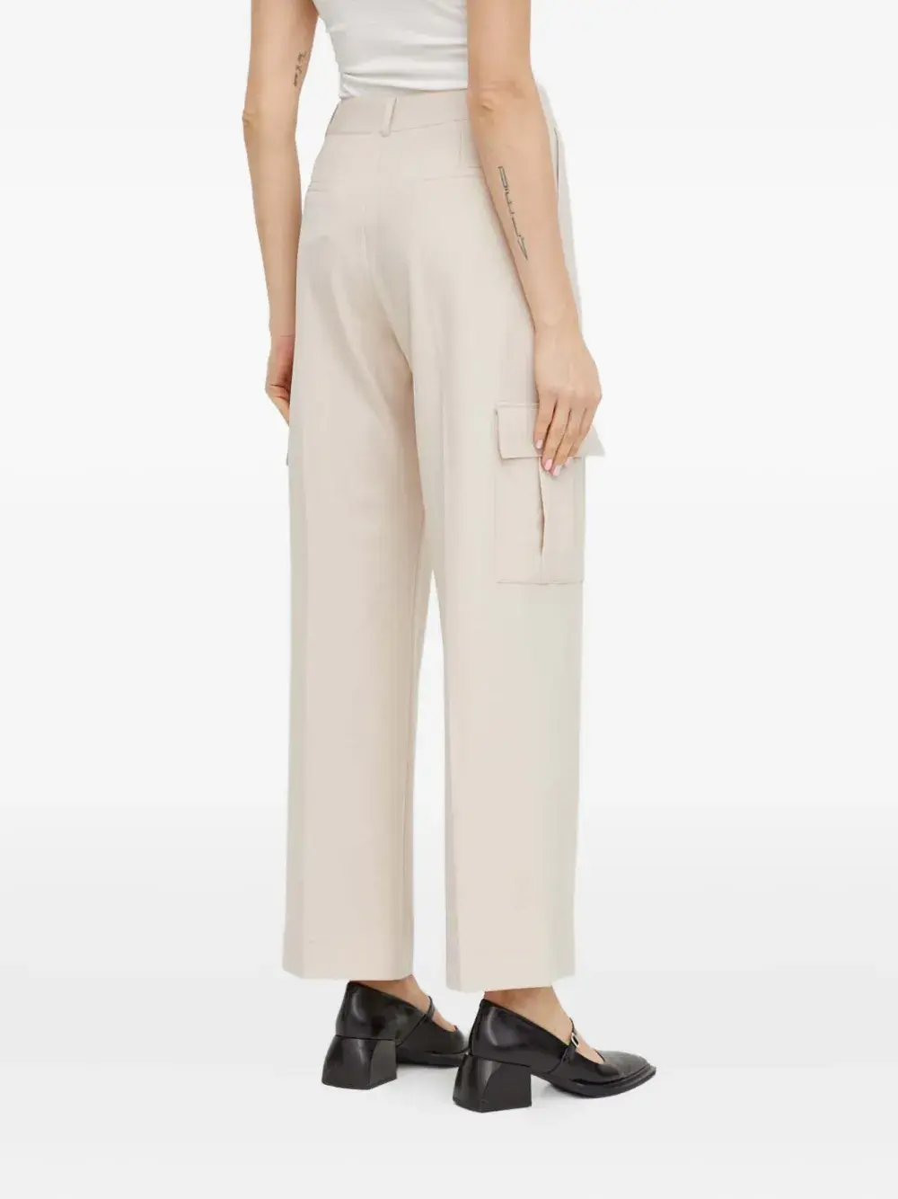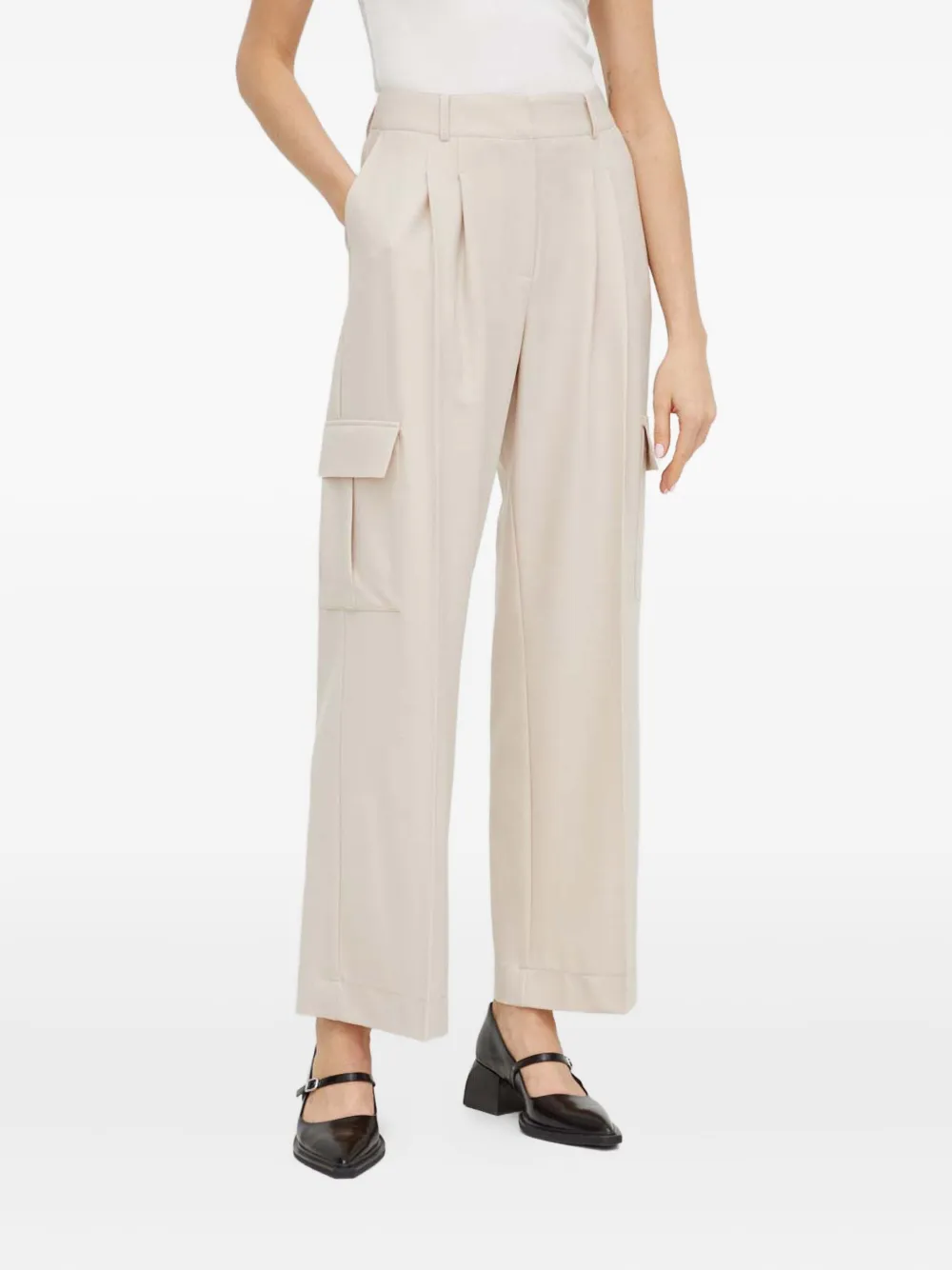 бежевые, с боковым клапаном на кармане, шлевками для ремня, скрытой застежкой, прямые, широкие брюки
