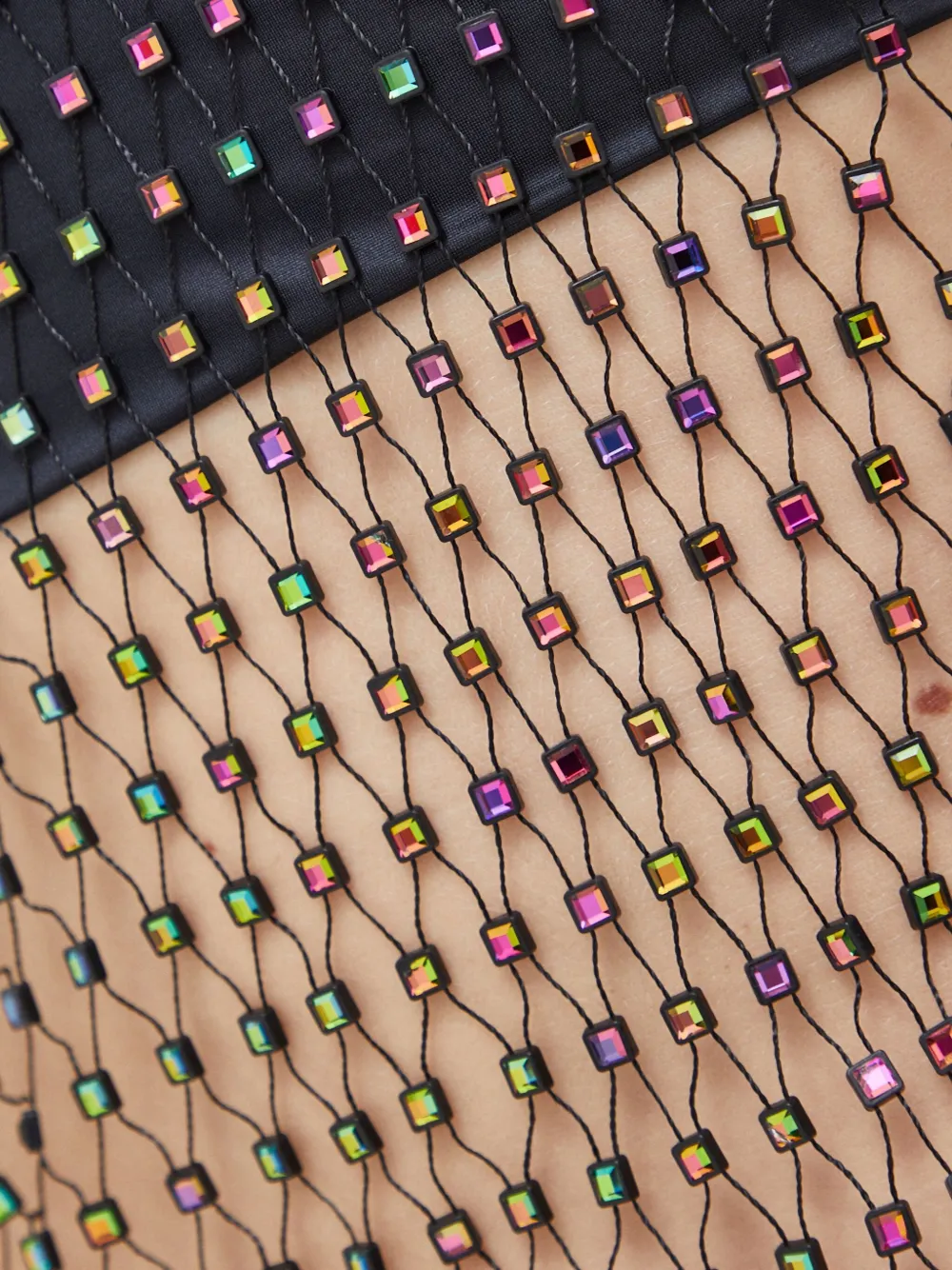 черная сетка, квадратные украшения, без рукавов, бахрома по краю