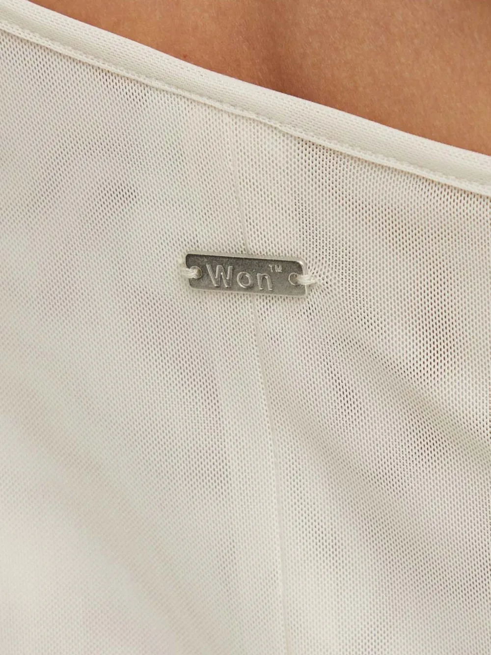бежевый, с разрезом сзади, без рукавов, полупрозрачный