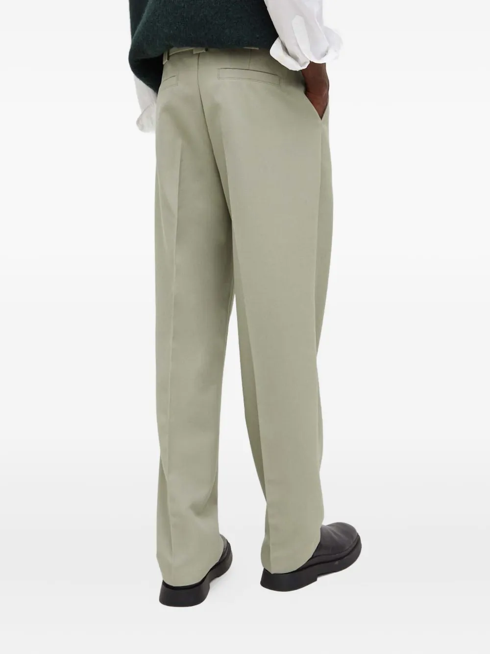 зелёные, шлевки для ремня, боковые карманы, задний прорезной карман, прямые штанины