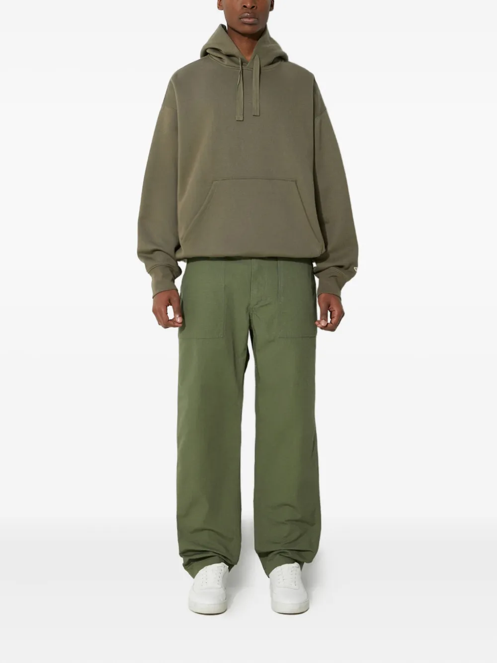 зелёное худи с кулиской, карманом-кенгуру, длинными рукавами и рубчатыми манжетами