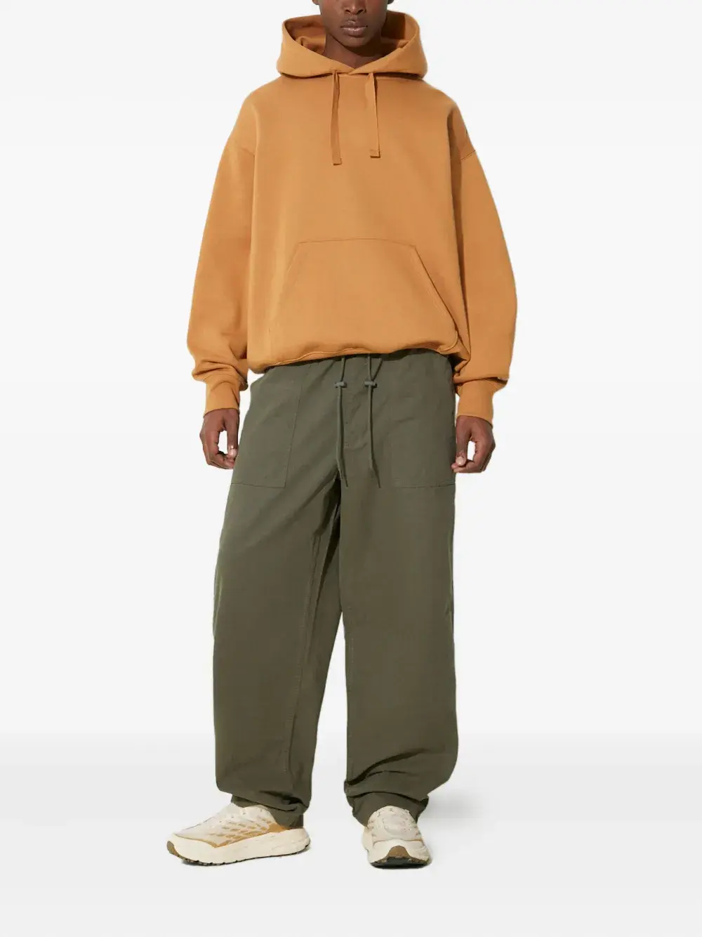 коричневый худи с карманом-кенгуру, длинными рукавами и ребристыми манжетами