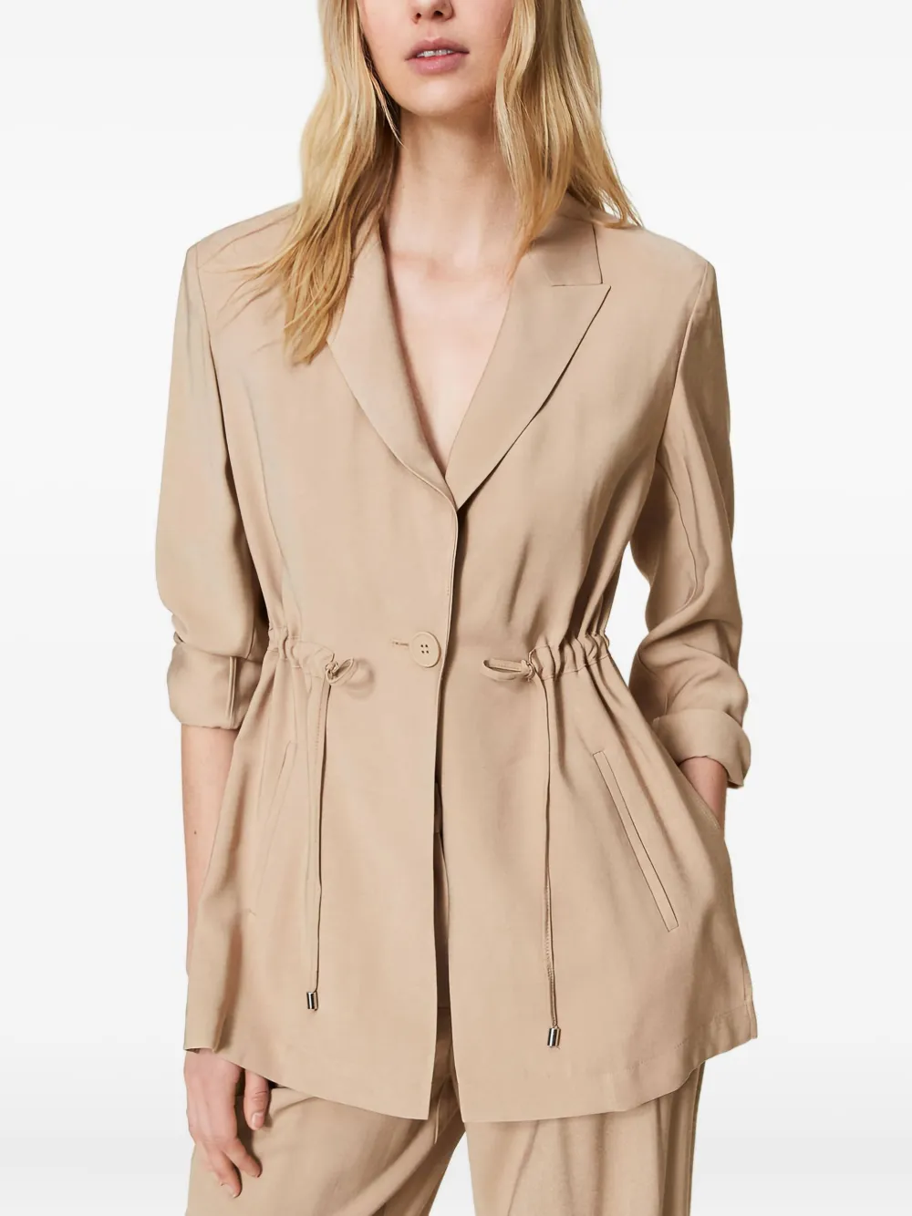 Однобортный блейзер с кулиской Twinset, нейтральный 18 531₽