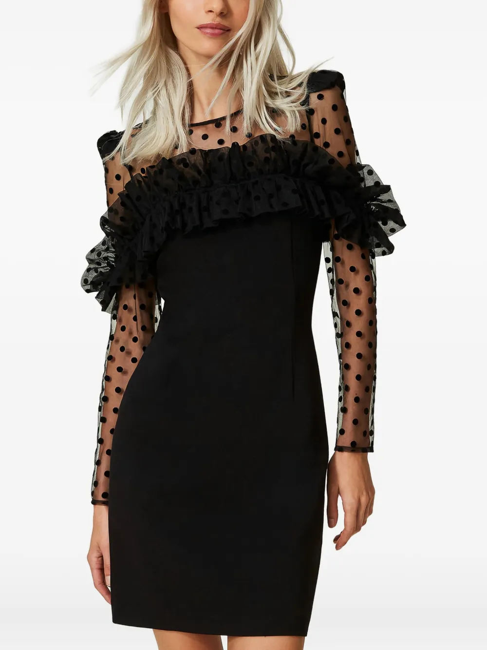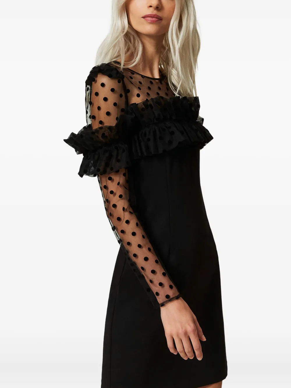Платье мини в горох с оборками Twinset, черный
