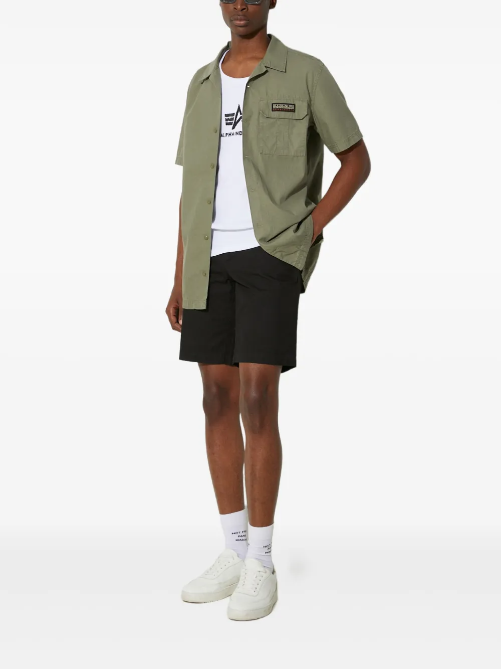 черная нашивка с логотипом, шлевки для ремня, задний прорезной карман, боковые карманы-сляш