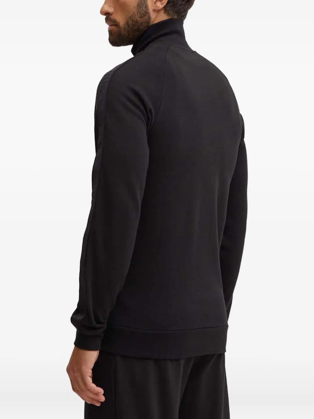 черная хлопковая толстовка с застежкой-молнией, высоким воротником, логотипом, длинными рукавами и боковыми полосками