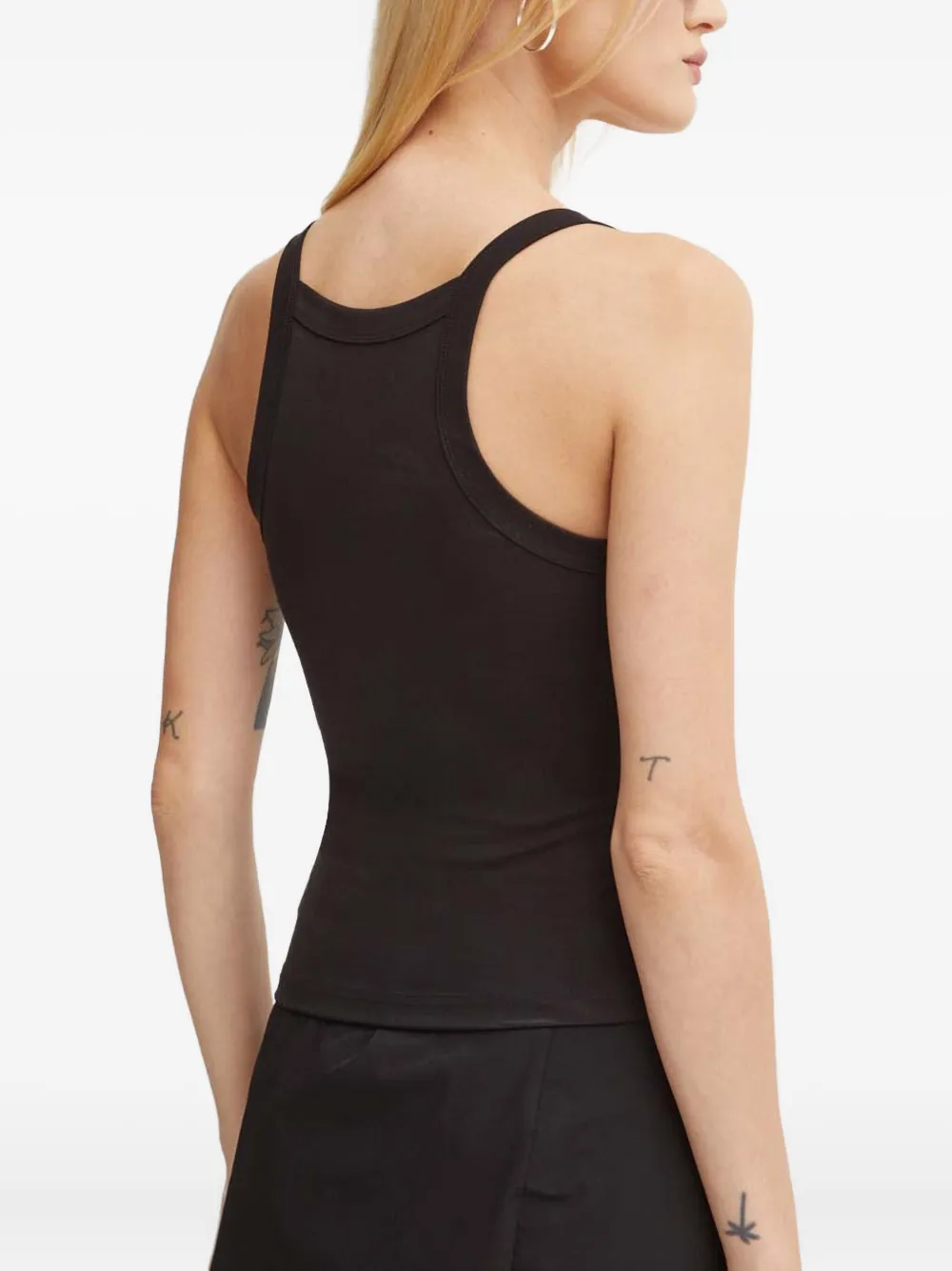 черная майка без рукавов с вырезами, округлым вырезом горловины и спинкой-борцовкой