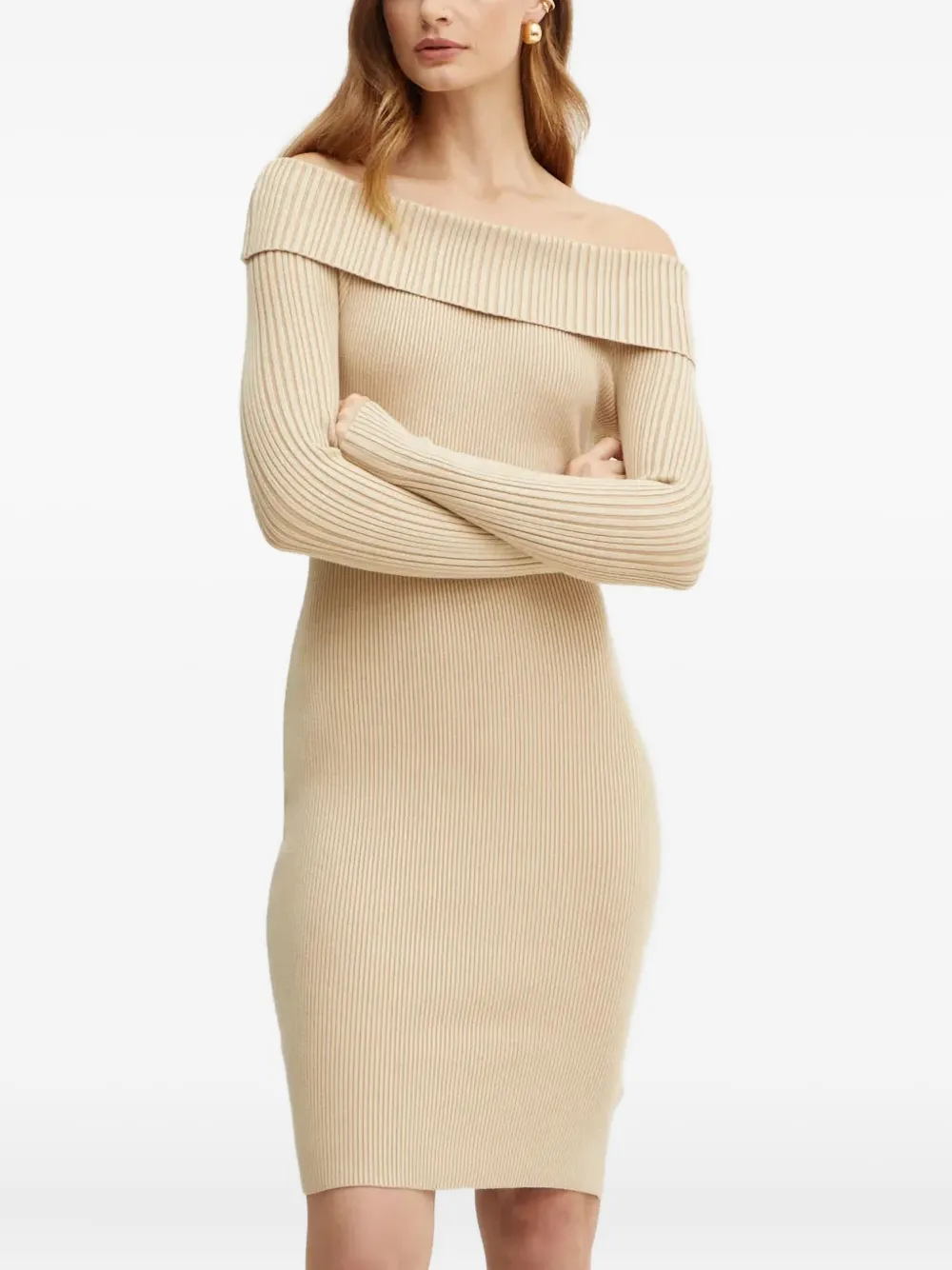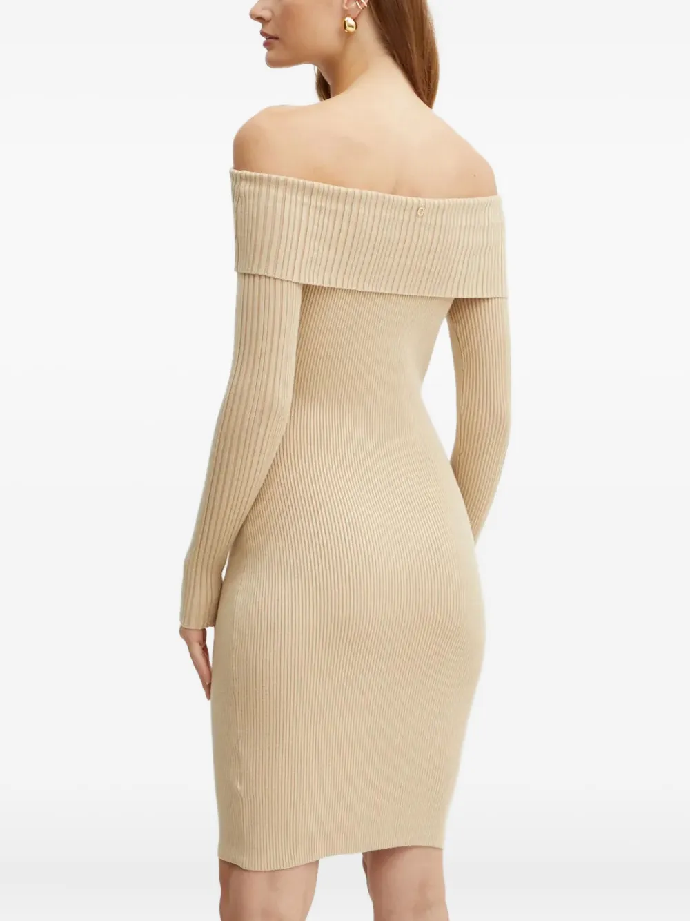 Платье мини в рубчик с открытыми плечами Guess Usa, бежевый 12 474₽