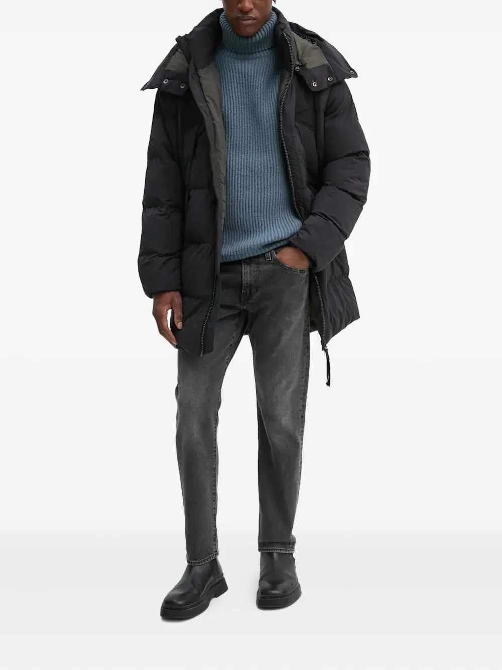 серый кожаный ярлык сзади, пять карманов, шлевки для ремня, застежка-молния