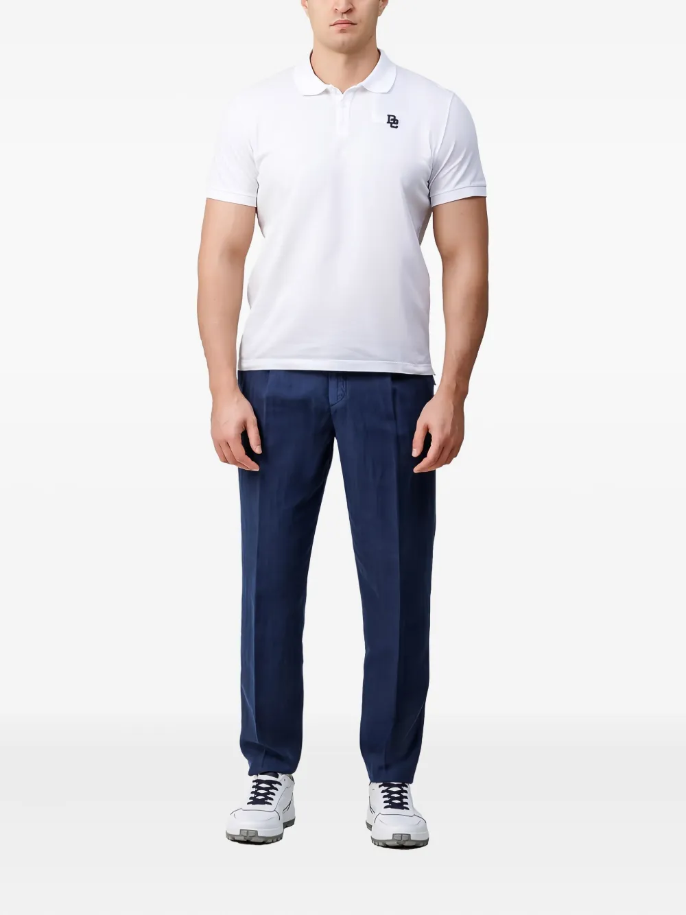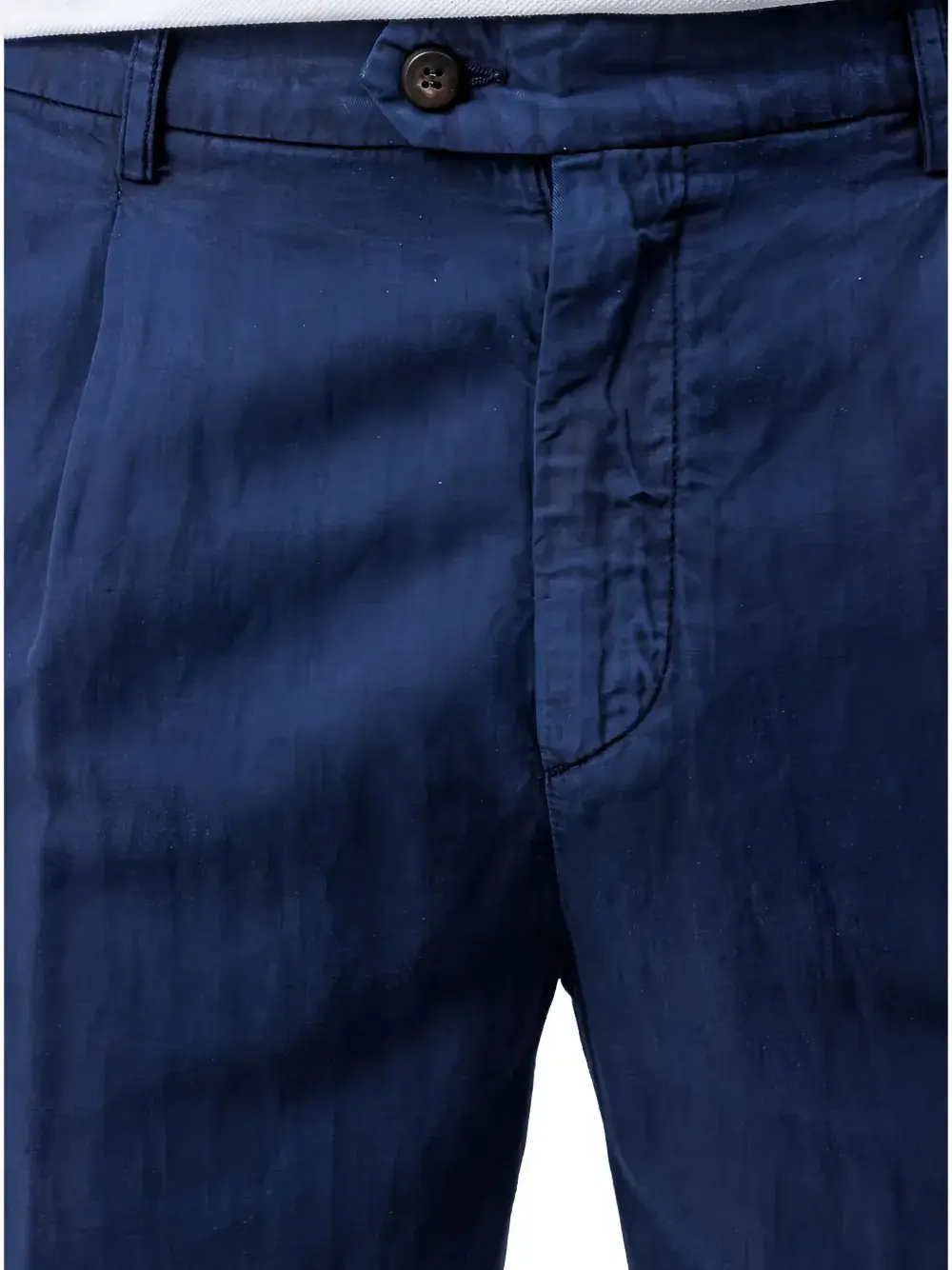 джинсово-голубой цвет, застежка на пуговицы, шлевки для ремня, задний карман, плиссированные детали, прямой крой брючин