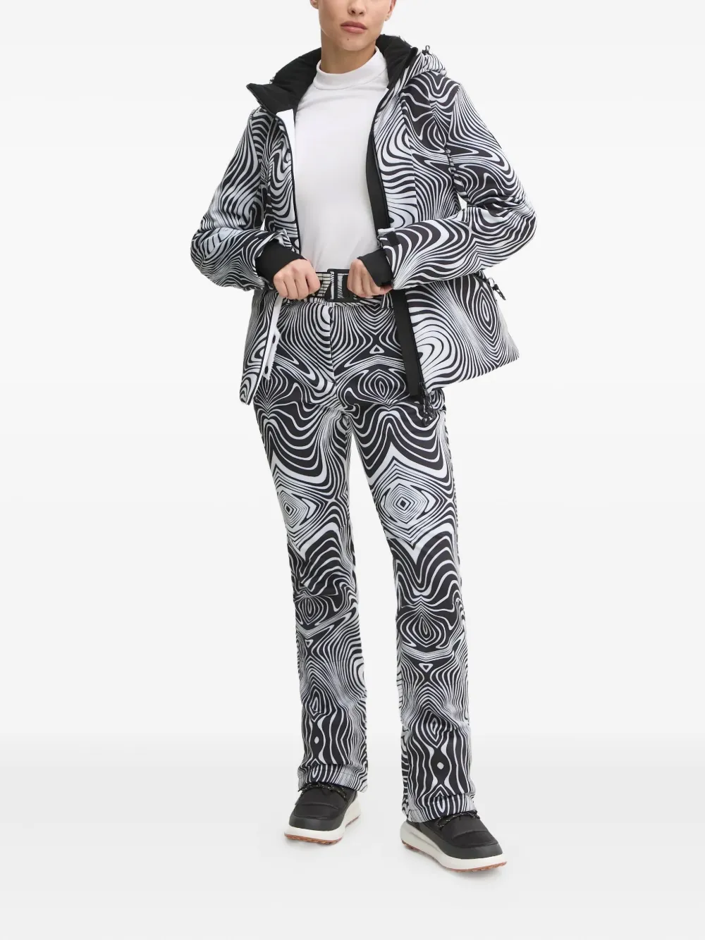 чёрно-белая толстовка с графическим принтом, капюшоном на затяжках и застежкой-молнией