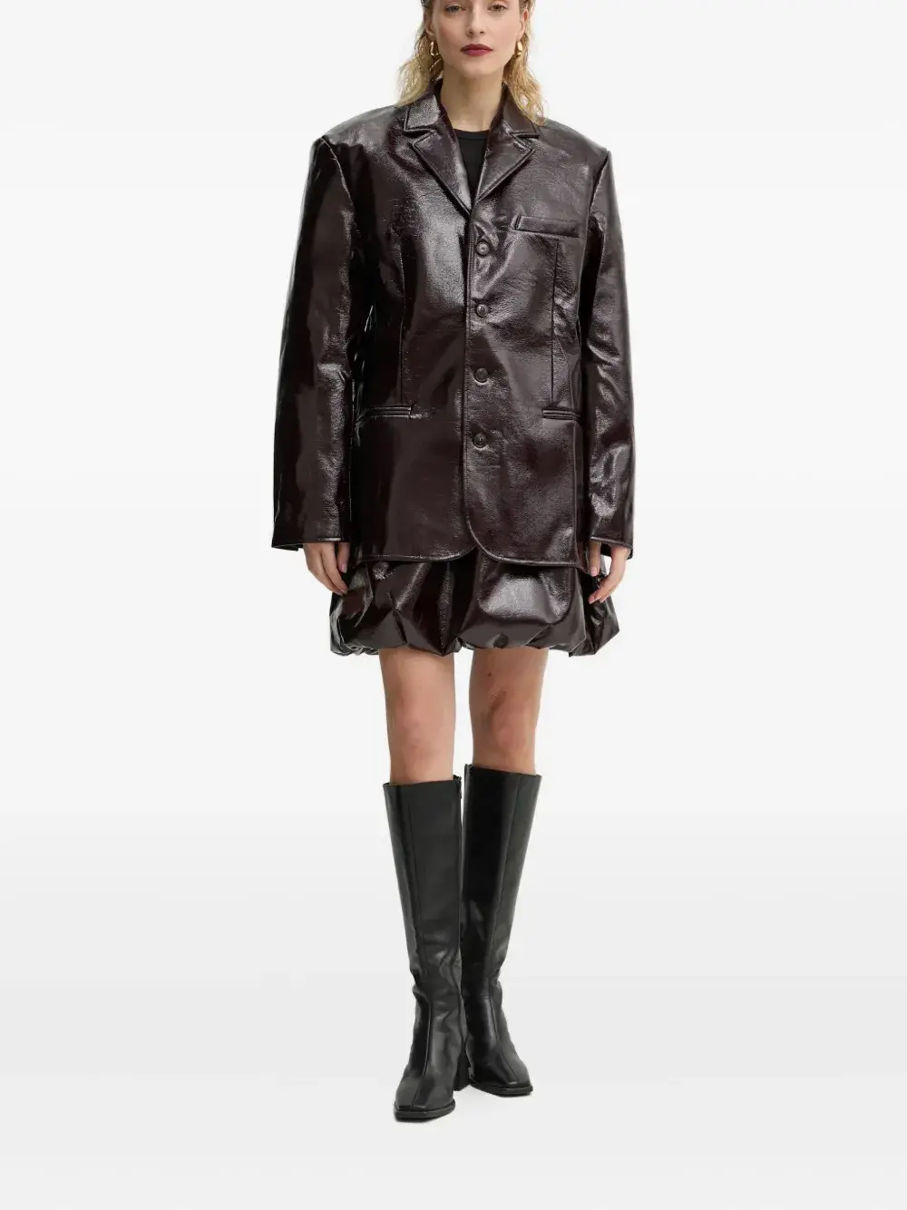 бордовый цвет, эластичный пояс, сборки, полированная отделка