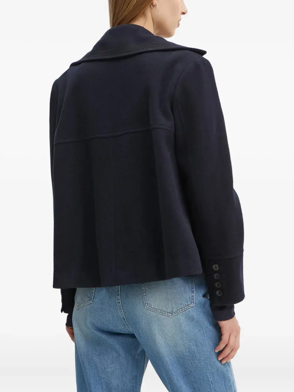 темно-синий, застегивается на пуговицы, манжеты на пуговицах, двубортный