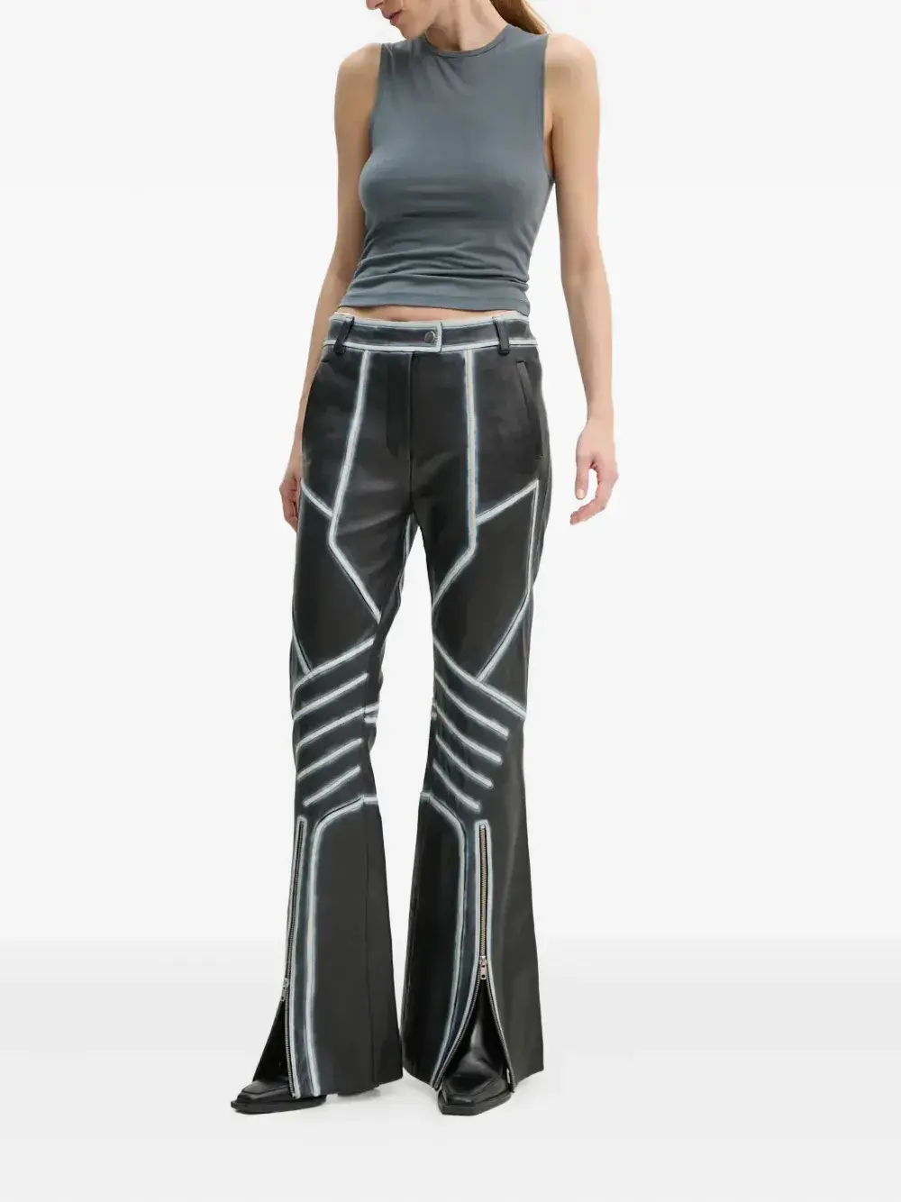 черный цвет, дизайн с панелями, детали с эффектом распыленной краски, молния, застежка на пуговицу, шлевки для ремня, задние прорезные карманы