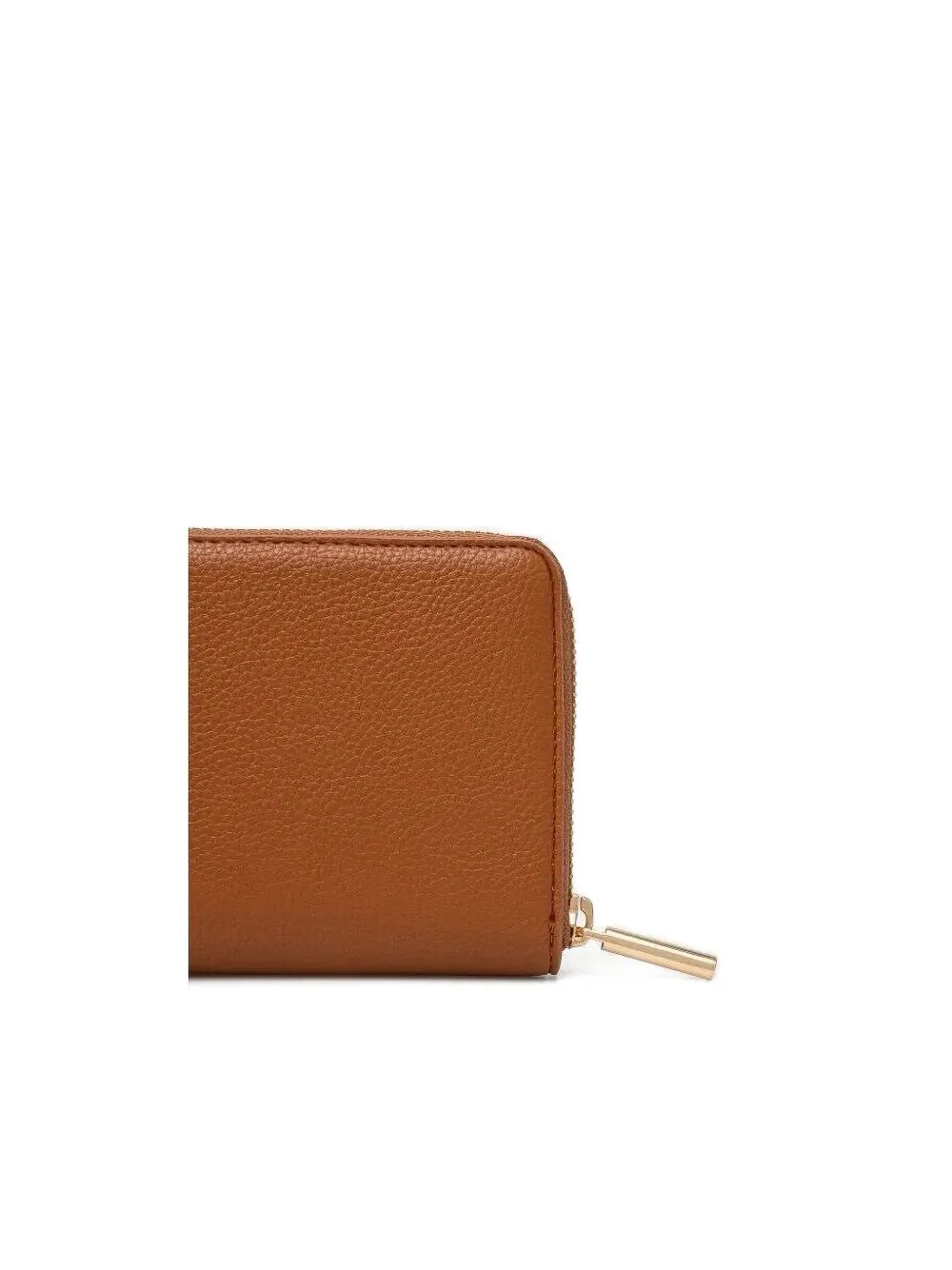 коричневая кожа, золотистая буква-логотип, застежка-молния