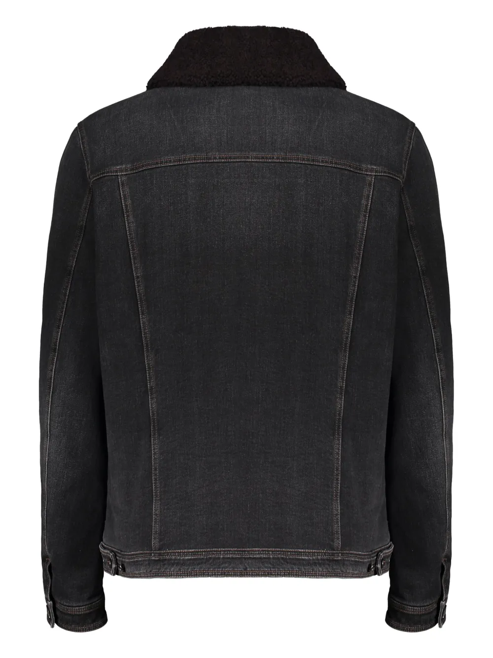 черный цвет, воротник из овчины, застежка на пуговицах, нагрудные карманы, манжеты на пуговицах