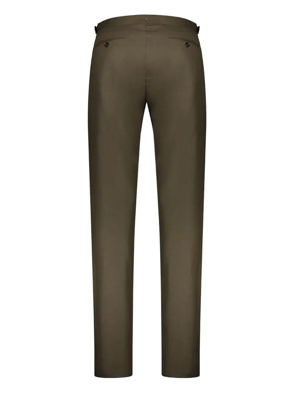 оливково-зеленые шлевки для ремня, застежка на пуговицу, боковые карманы, задние прорезные карманы, складки спереди