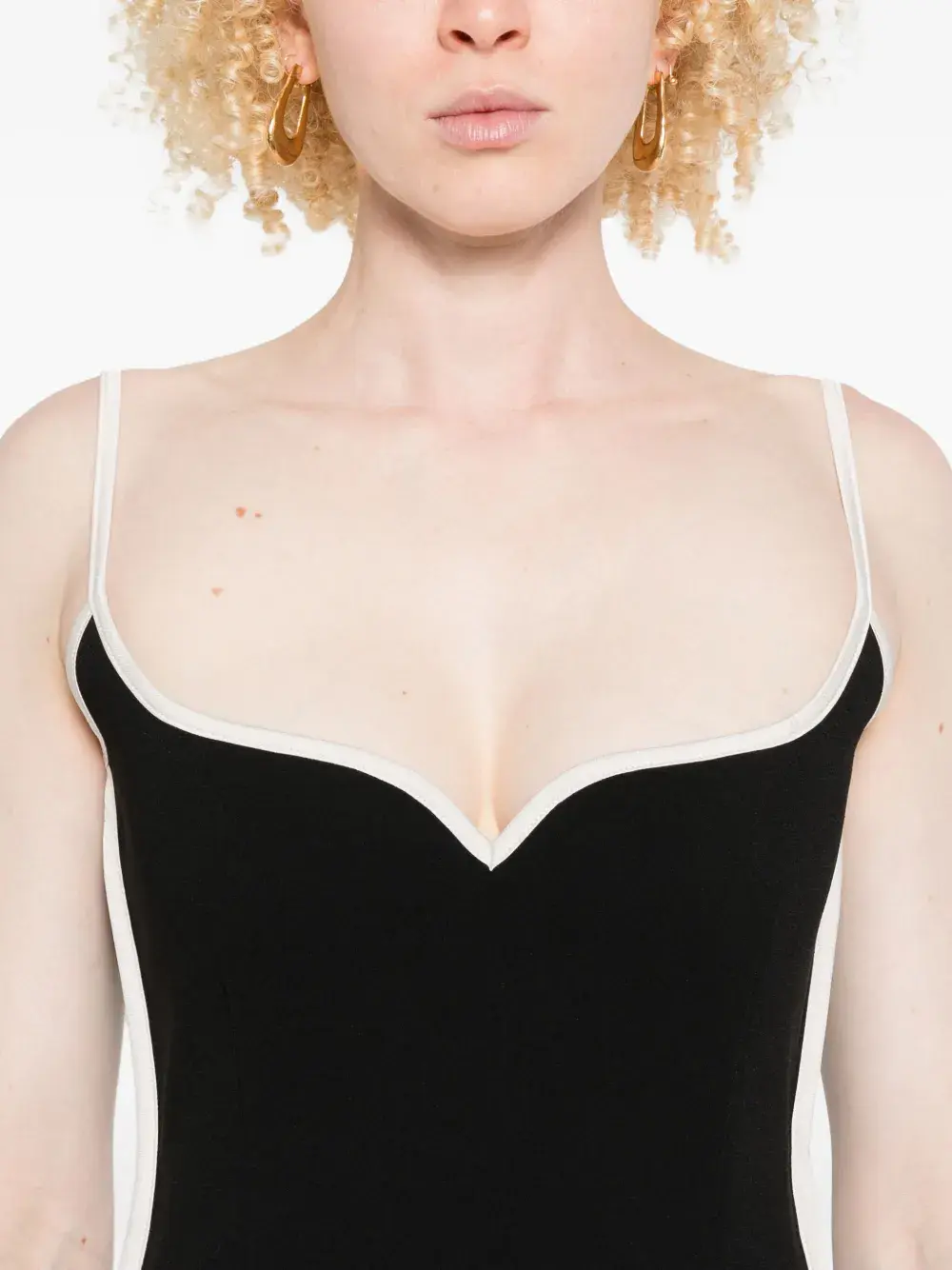 чёрный отделка кремового цвета (молочно-белая) тонкие бретельки вырез "сердечком" длина миди