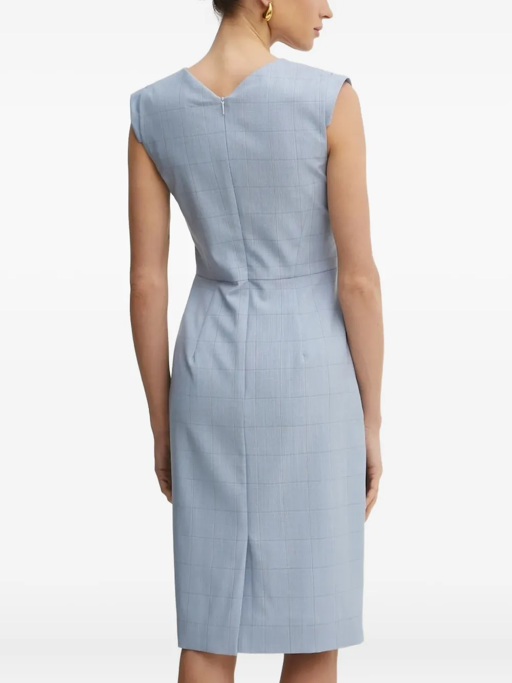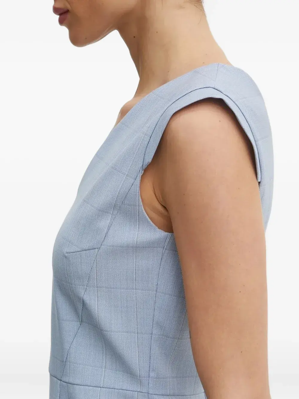 Клетчатое платье мини с V-образным вырезом Boss, синий