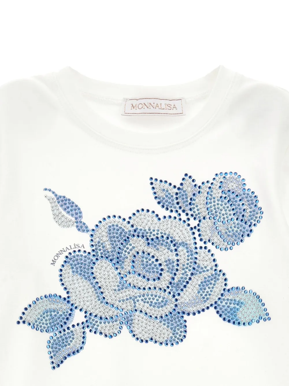 Декорированный топ с длинными рукавами Monnalisa, белый
