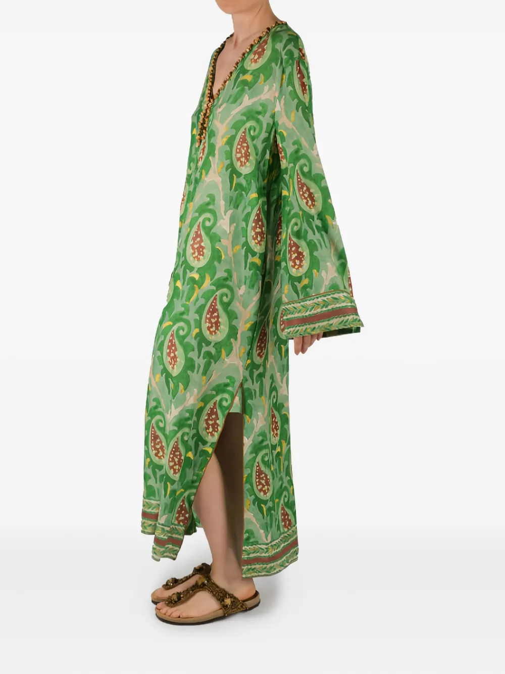 Платье макси с кулиской и принтом пейсли Maliparmi, зеленый