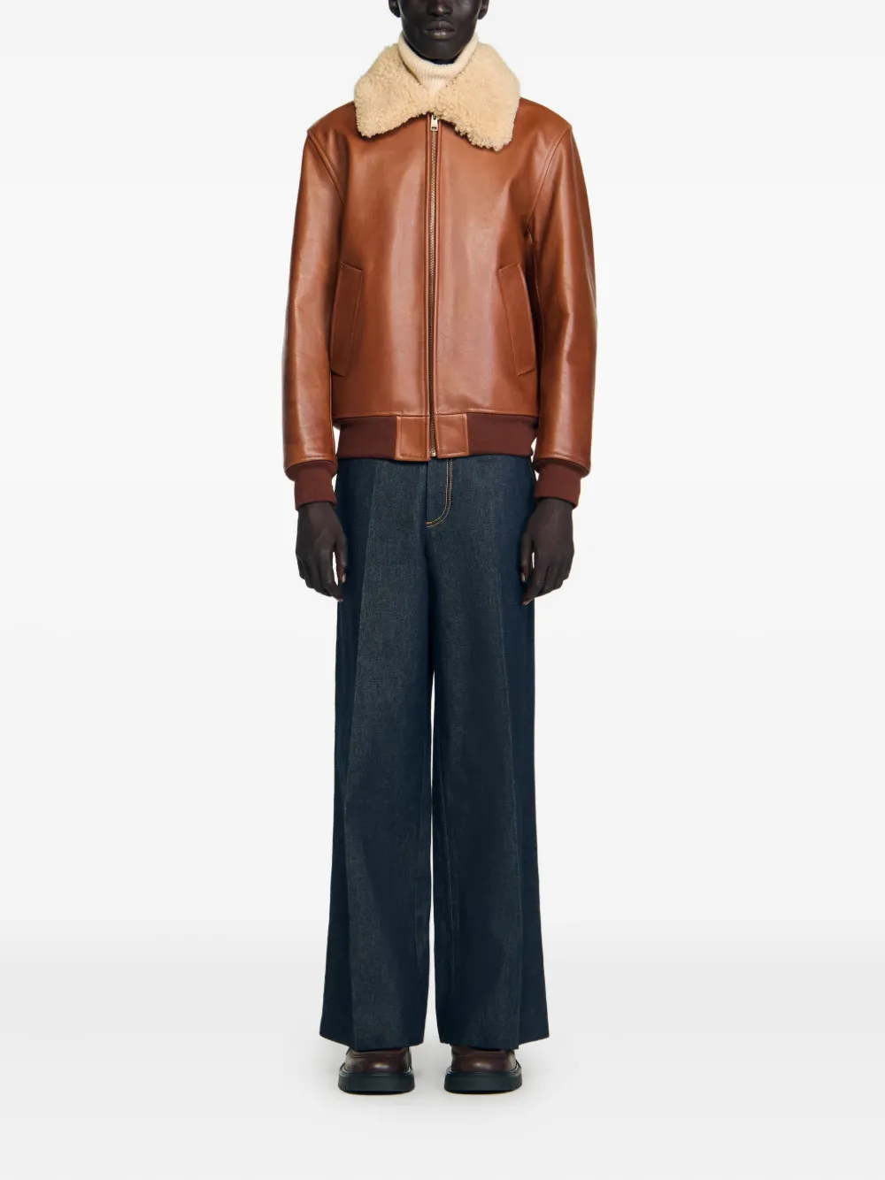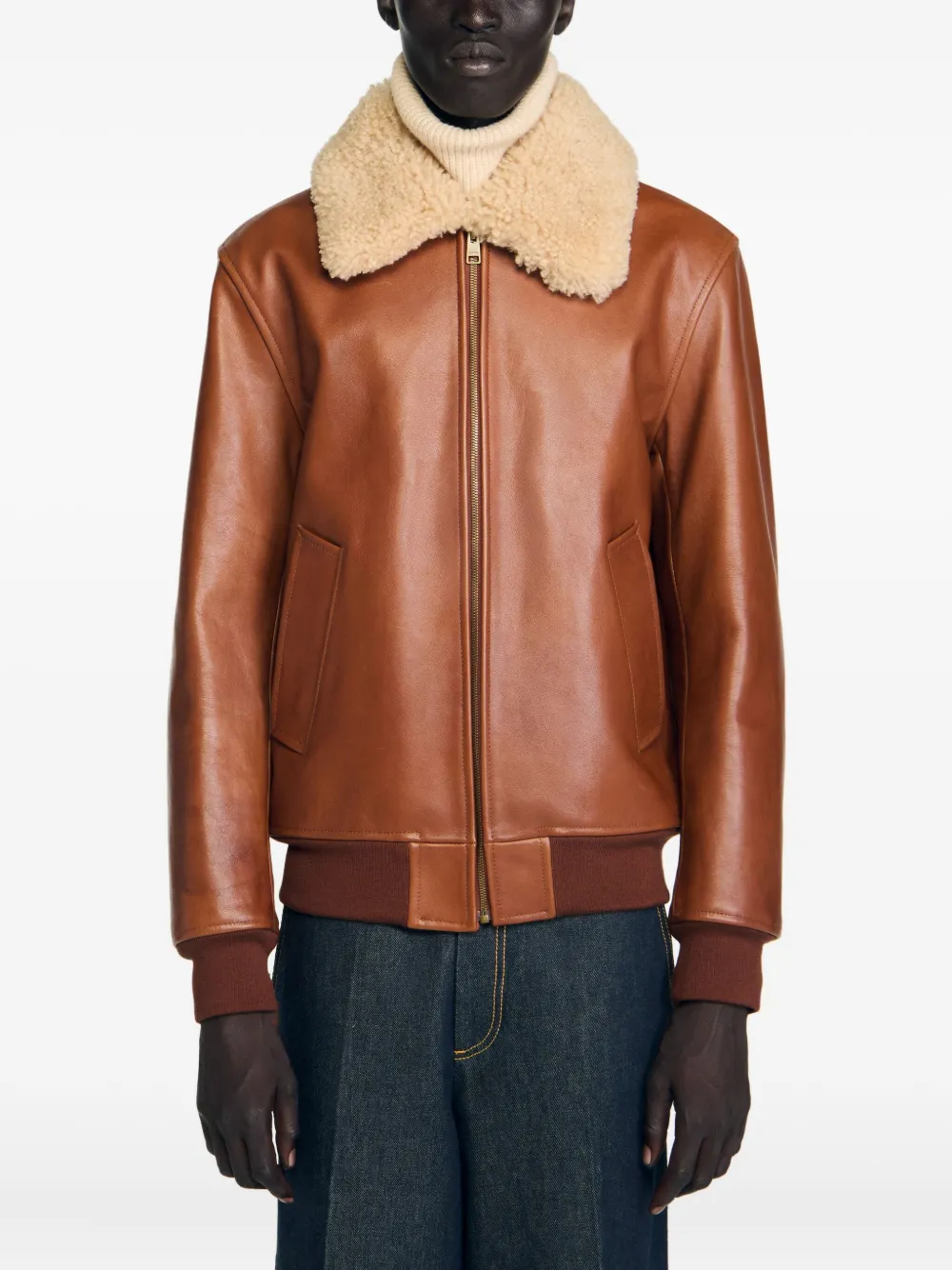 Куртка с воротником из овчины Sandro, коричневый