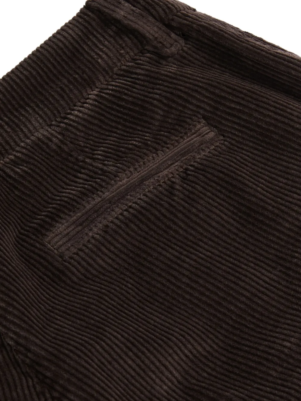 фактура вельвета темно-коричневого цвета, шлевки для ремня, застежка на пуговицу, подрубленный край, задний прорезной карман