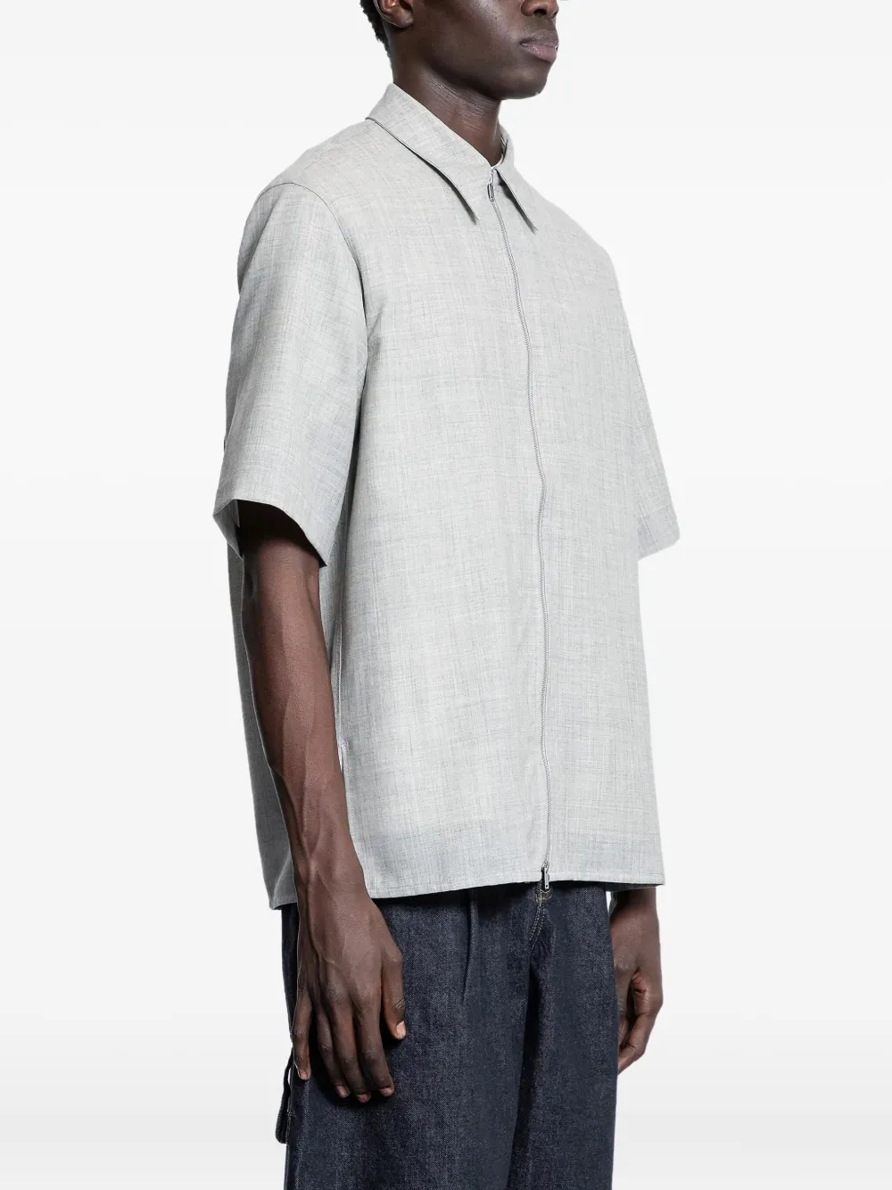 серый шерстяной топ на молнии с короткими рукавами и классическим воротником