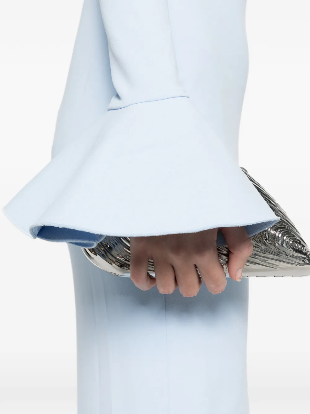 ледяной голубой топ с открытыми плечами, длинными рукавами, расклешёнными манжетами и потайной застежкой-молнией сзади