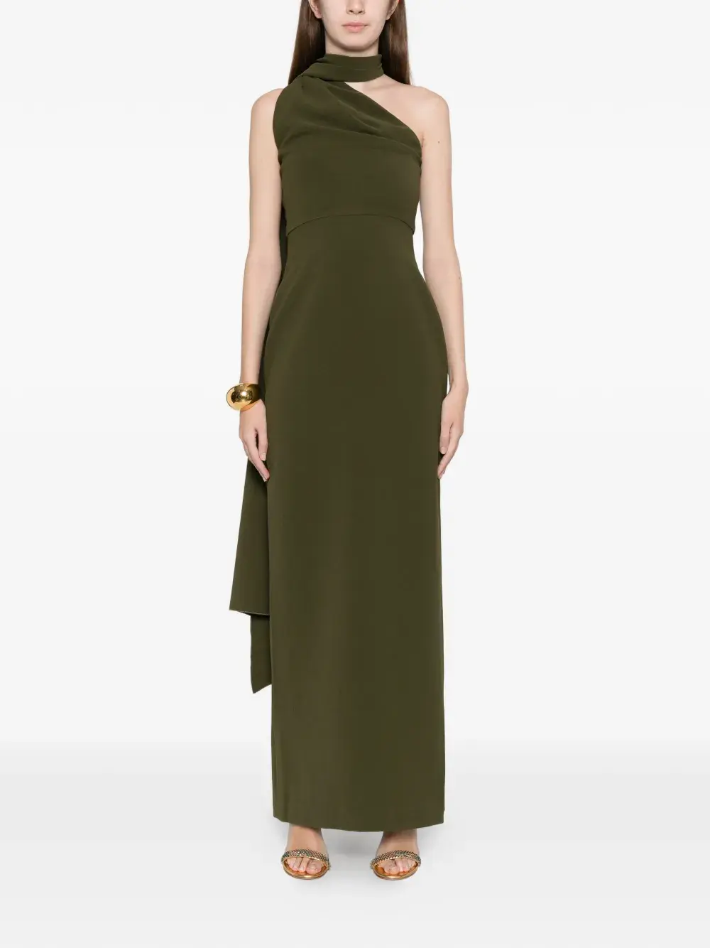макси-платье темно-оливкового цвета с асимметричным (на одно плечо) кроем