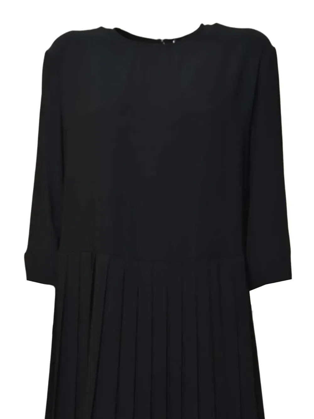 черная плиссированная юбка, рукава три четверти, круглый вырез, застежка-молния сзади