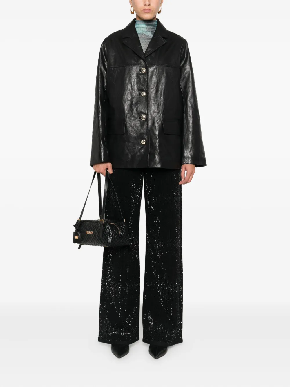 Однобортный кожаный пиджак Maje, черный