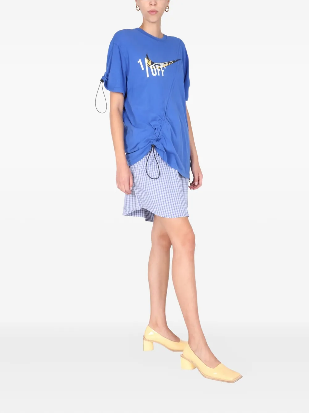 синий в клетку "гингем", шнурок-затяжка, короткие рукава, круглый вырез, многослойный дизайн