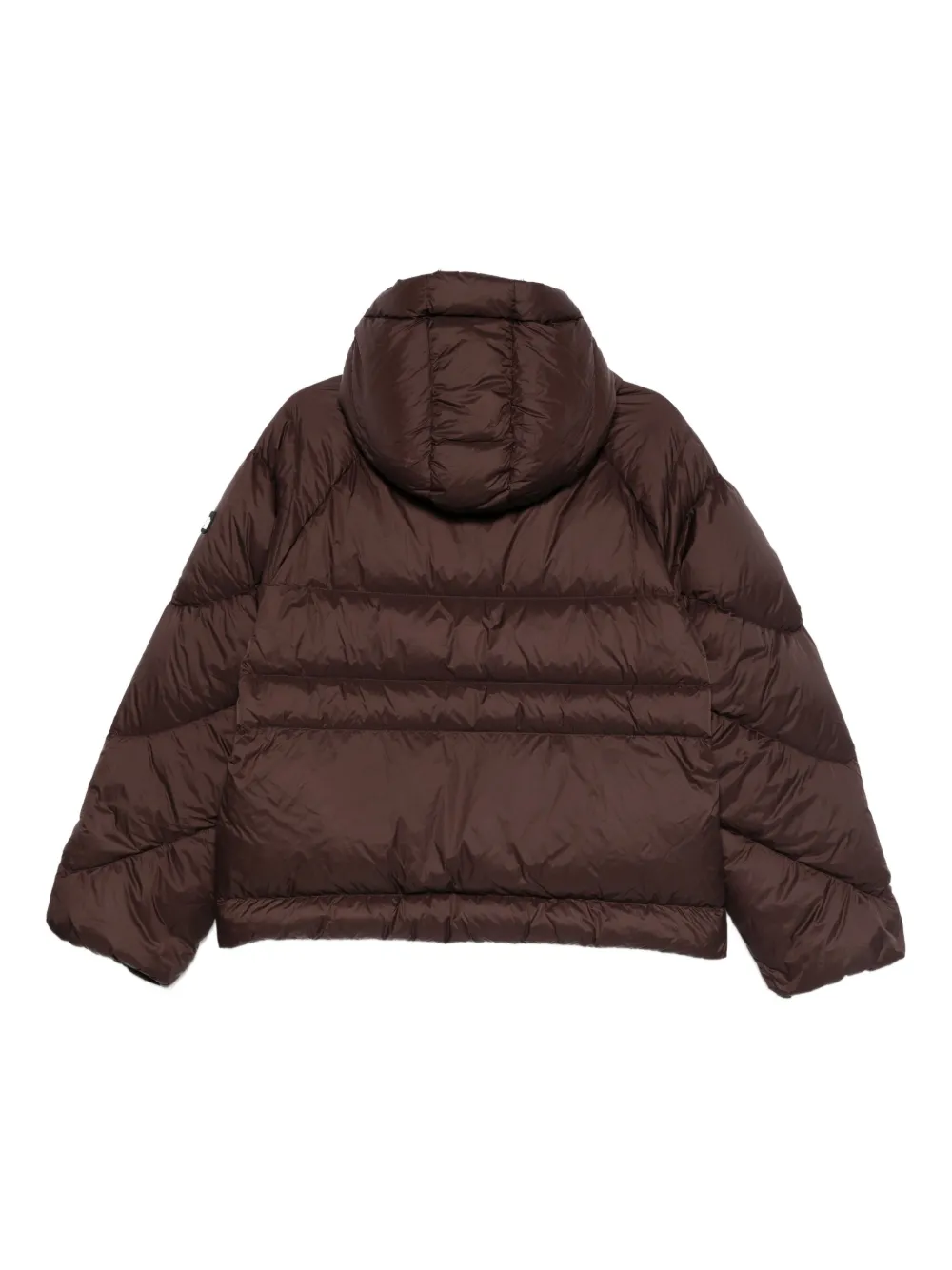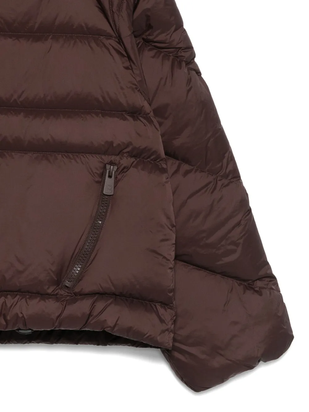 коричневая стеганая куртка с капюшоном, застёжкой-молнией и передними карманами на молнии