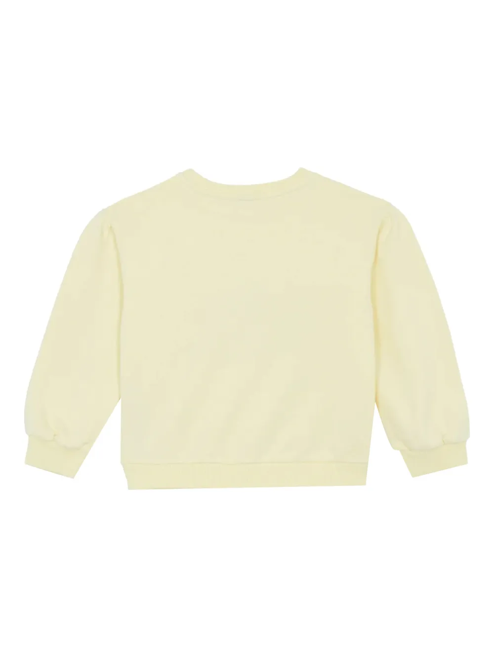 жёлтый свитшот с графическим принтом, круглым вырезом, длинными рукавами, ребристым низом и манжетами