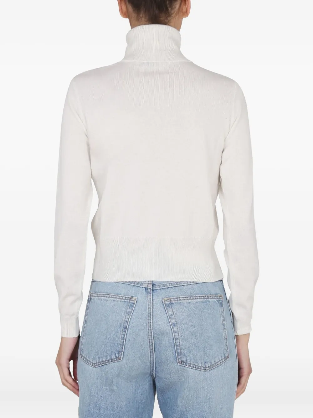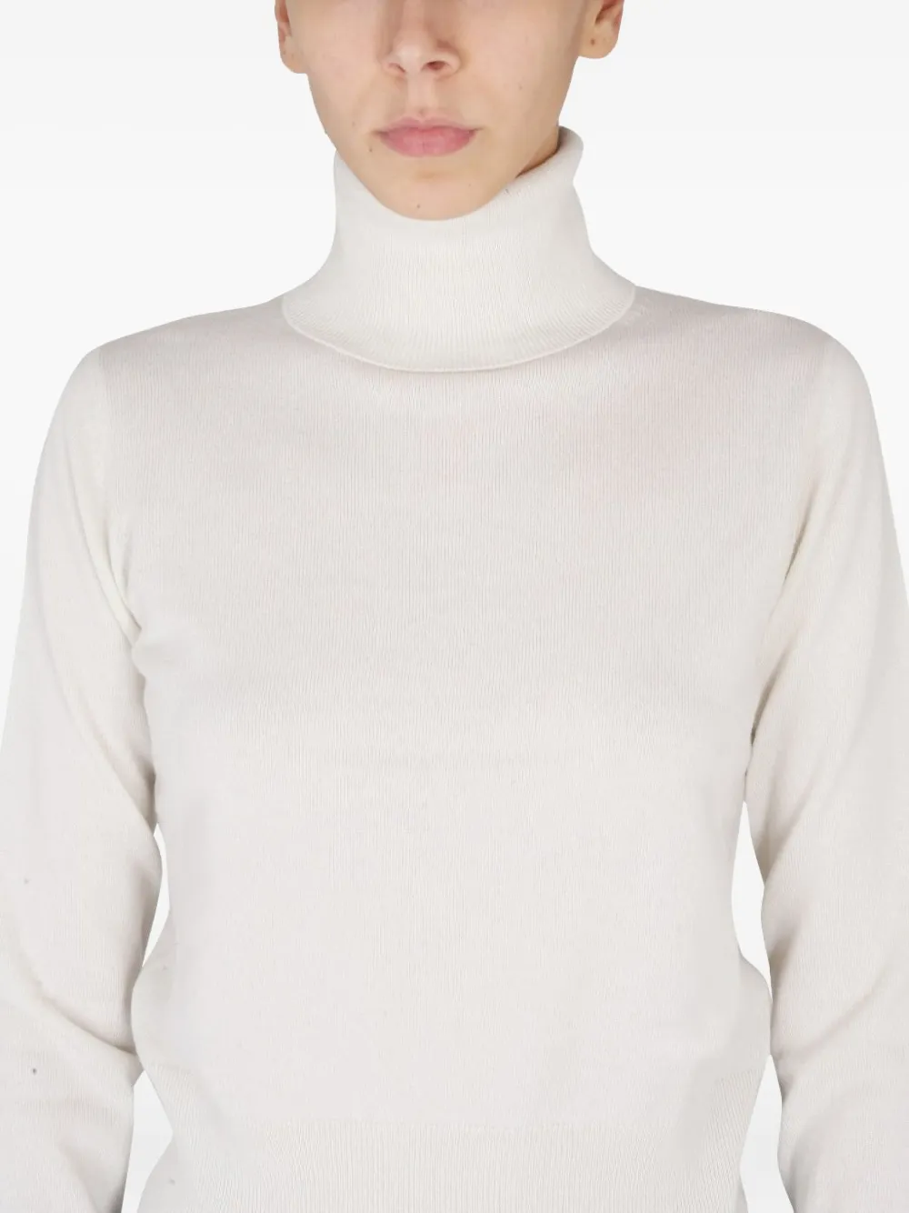 белая водолазка с длинными рукавами, ребристым подолом и ребристыми манжетами