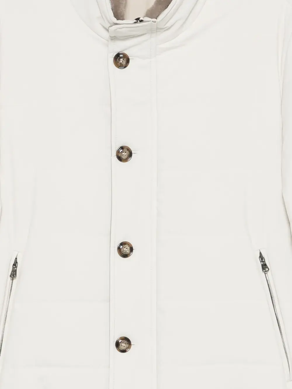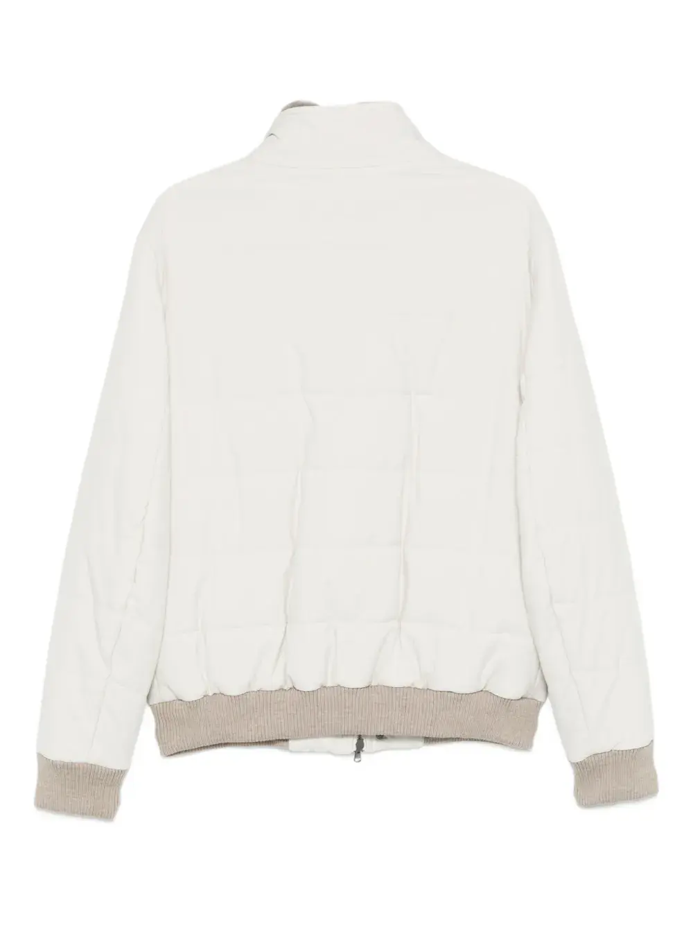 белый цвет, ребристый край, ребристые манжеты, застежка на пуговицы, молния, стеганая отделка