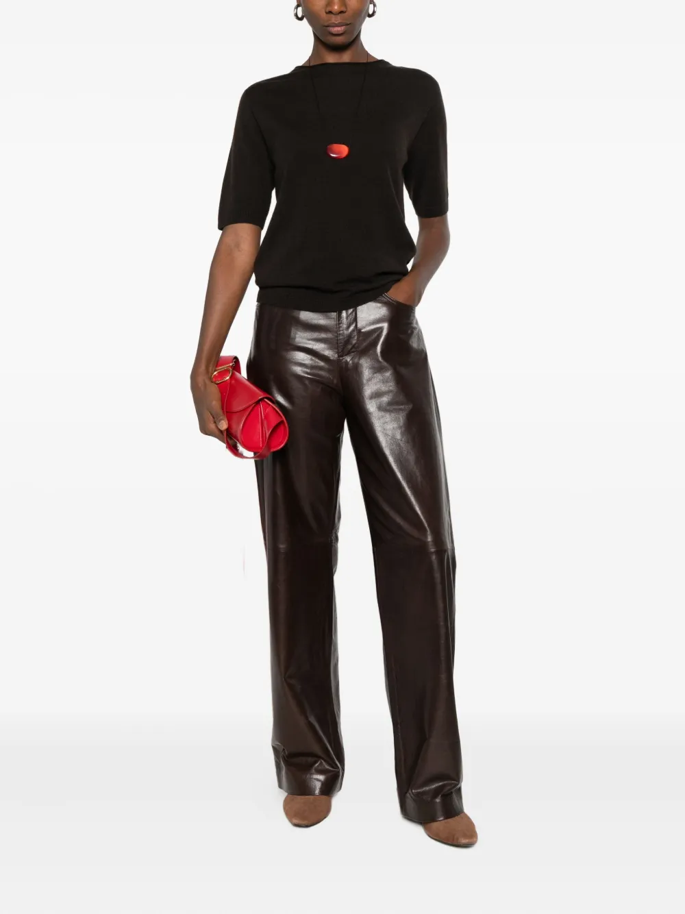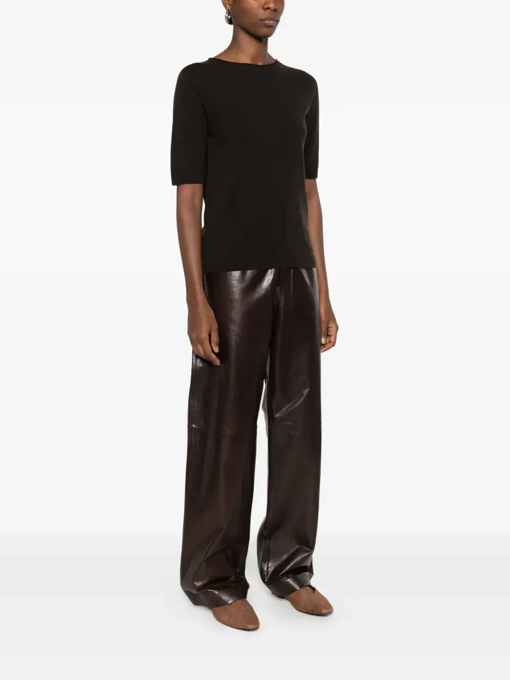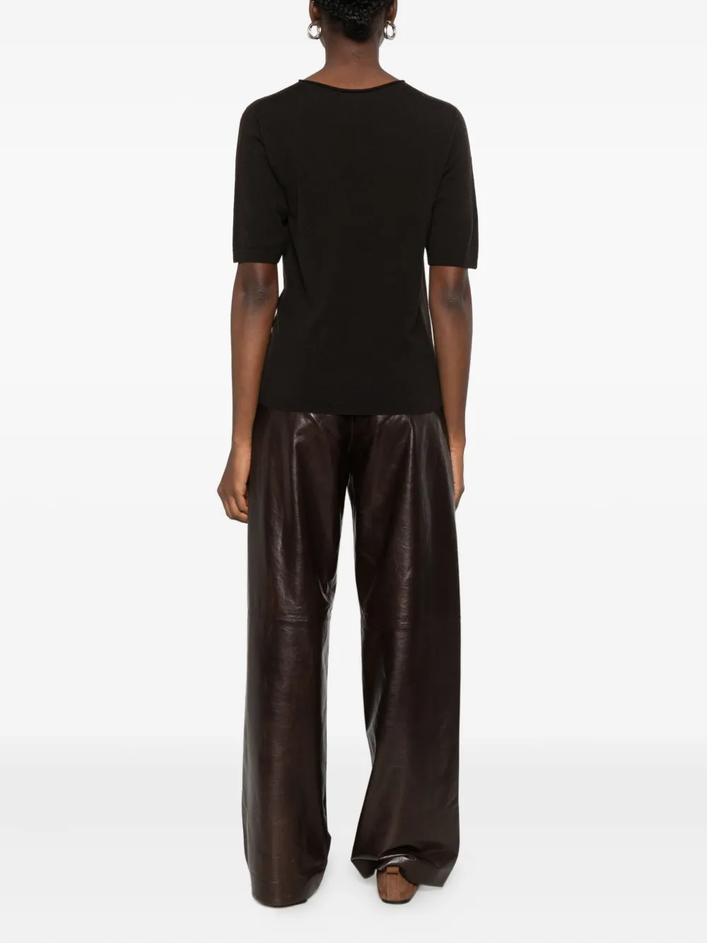 темно-коричневый, короткие рукава, круглый вырез, прямой подол